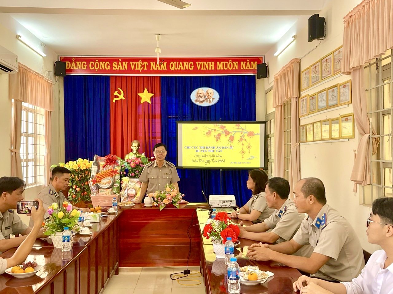 Nhân dịp Tết Nguyên đán Giáp Thìn 2024, sáng 31/01, Cục Thi hành án dân sự (THADS) tỉnh An Giang tổ chức gặp mặt, chúc Tết công chức, người lao động Chi cục THADS huyện Phú Tân.