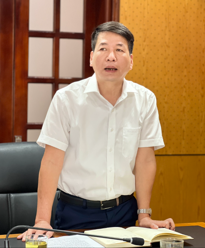 Đồng chí Đoàn Anh Phương - Phó viện trưởng VKSND tỉnh Bắc Ninh phát biểu về mục đích, yêu cầu của việc trực tiếp kiểm sát hoạt động thi hành án dân sự.