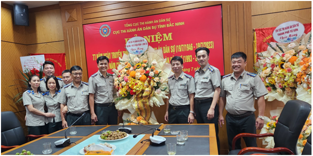 Nhân dịp kỷ niệm thành lập ngành lãnh đạo các cơ quan, đơn vị đã đến tặng hoa và chúc mừng Cục Thi hành án dân sự tỉnh Bắc Ninh.