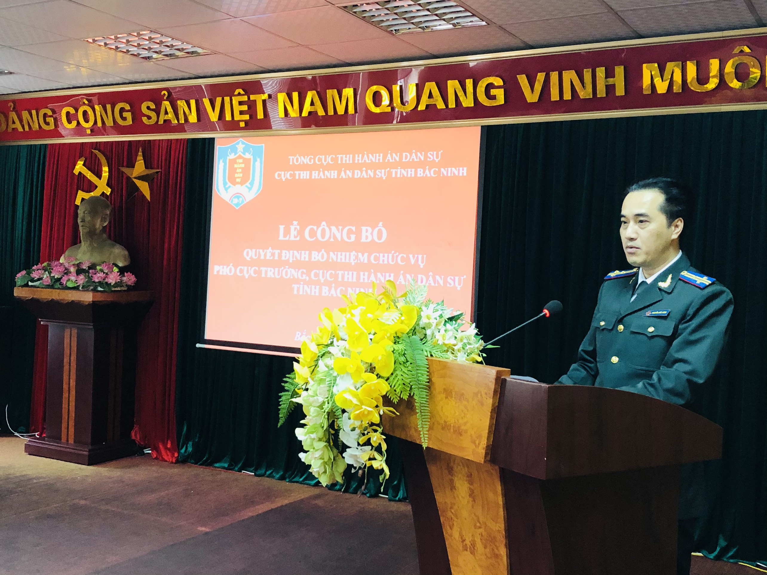 Ngày 11 tháng 3 năm 2021, Cục Thi hành án dân sự tỉnh tổ chức lễ công bố và trao Quyết định số 88/QĐ-TCTHADS ngày 25 tháng 01 năm 2021 của Tổng cục trưởng Tổng cục Thi hành án dân sự về việc bổ nhiệm đồng chí Nguyễn Đắc Hùng, Chi cục trưởng Chi cục Thi hành án dân sự thành phố Bắc Ninh giữ chức vụ Phó Cục trưởng Cục Thi hành án dân sự tỉnh kể từ ngày 01 tháng 02 năm 2021. Tham dự buổi lễ có công chức, người lao động tại Cục, Lãnh đao các Chi cục Thi hành án dân sựhuyện, thị xã, thành phố trực thuộc.