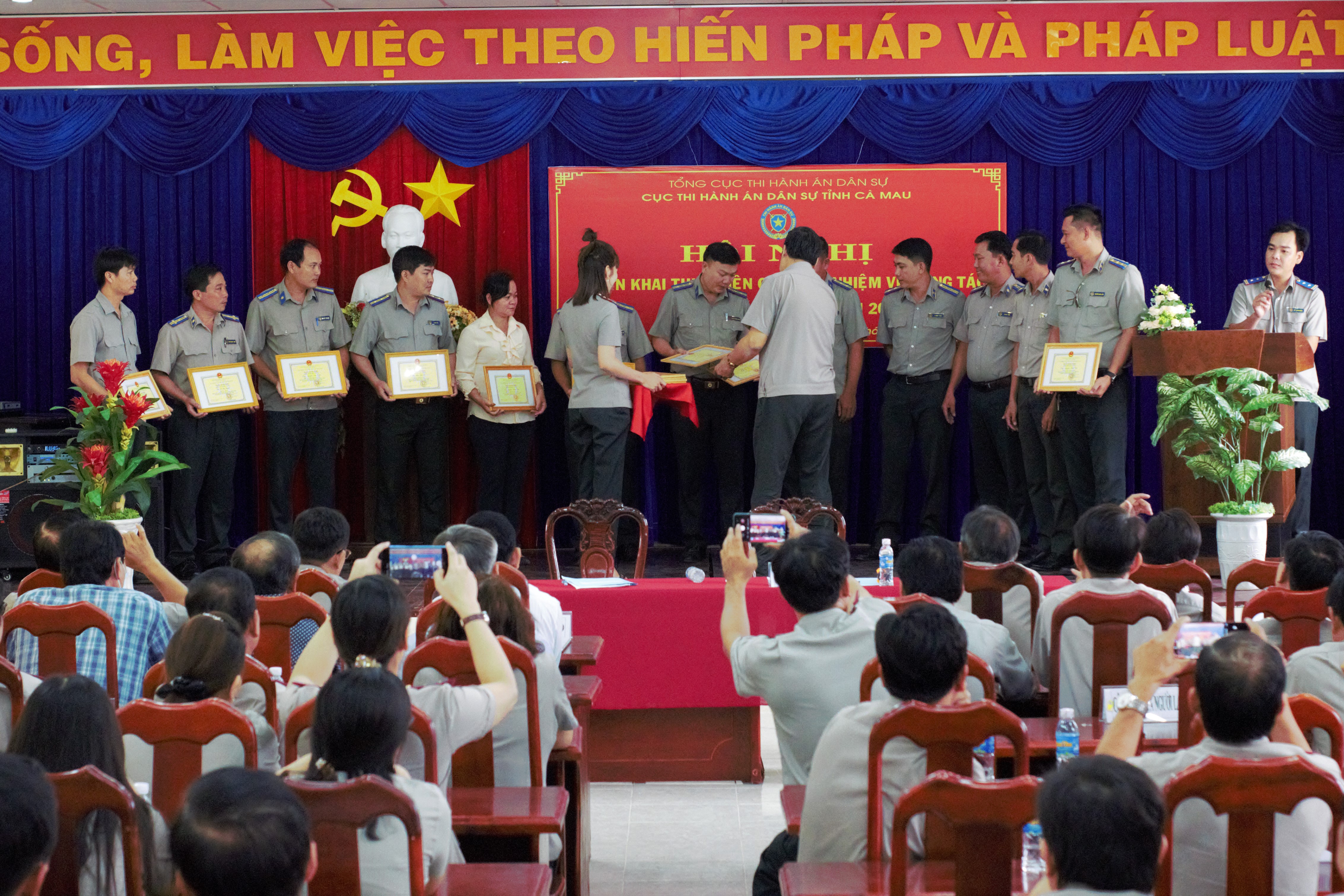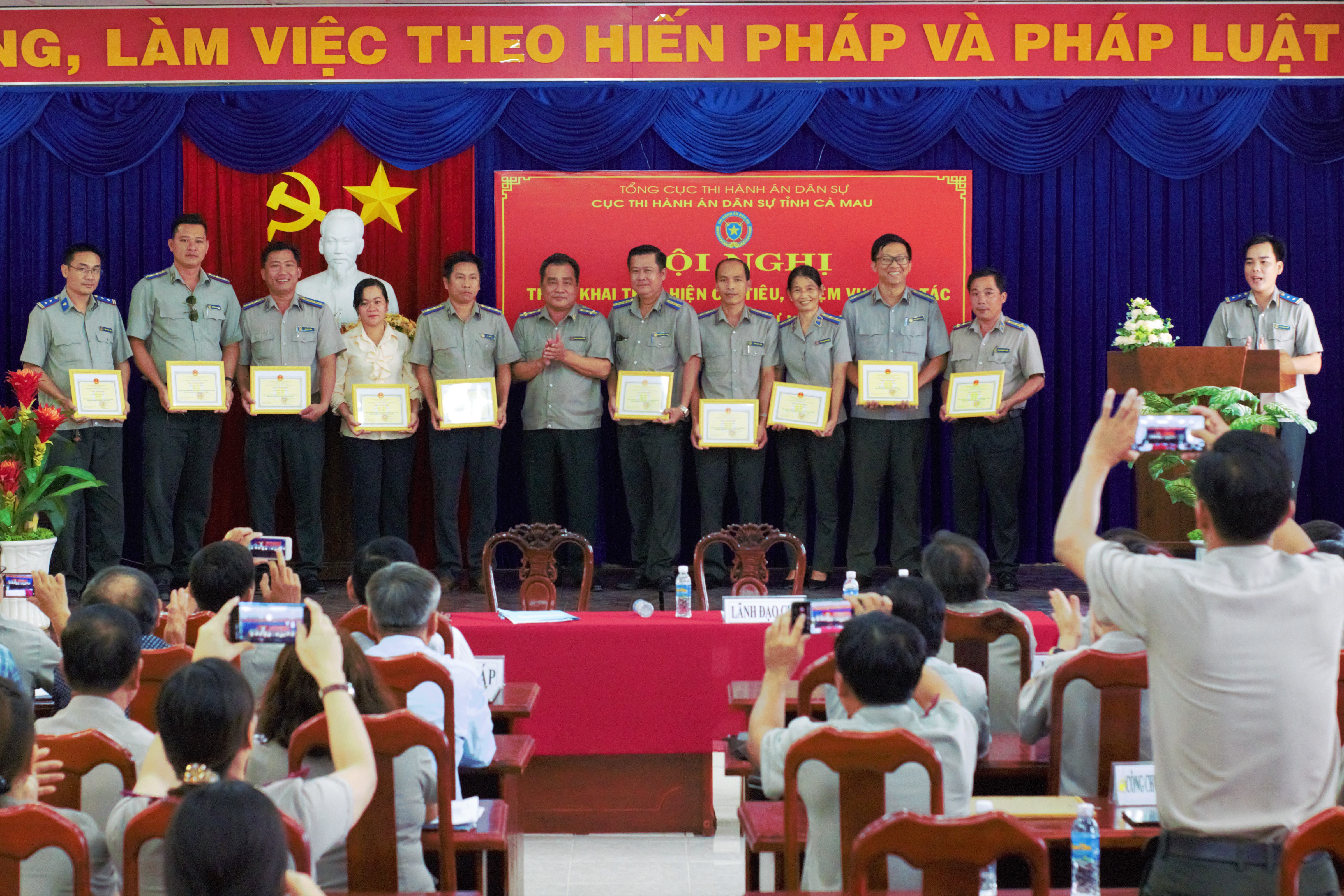 Nhân dịp này, Hội nghị đã trao tặng Bằng khen Bộ trưởng cho 02 tập thể và 05 cá nhân; Cờ thi đua Ngành Tư pháp 02 tập thể; Kỹ niệm chương Vì sự nghiệp Tư pháp cho 02 cá nhân; Kỹ niệm Chương vì sự nghiệp Văn thư cho 04 cá nhân; Bằng khen chủ tịch UBND tỉnh Cà Mau cho 02 cá nhân; Điển hình tiên tiến Ngành Tư pháp cho 02 cá nhân; Giấy khen Tổng cục trưởng cho 01 tập thể và 01 cá nhân; Giấy khen Cục trưởng cho 10 tập thể và 103 cá nhân; Chiến sĩ thi đua cơ sở cho 14 cá nhân cùng nhiều danh hiệu khen thưởng khác.