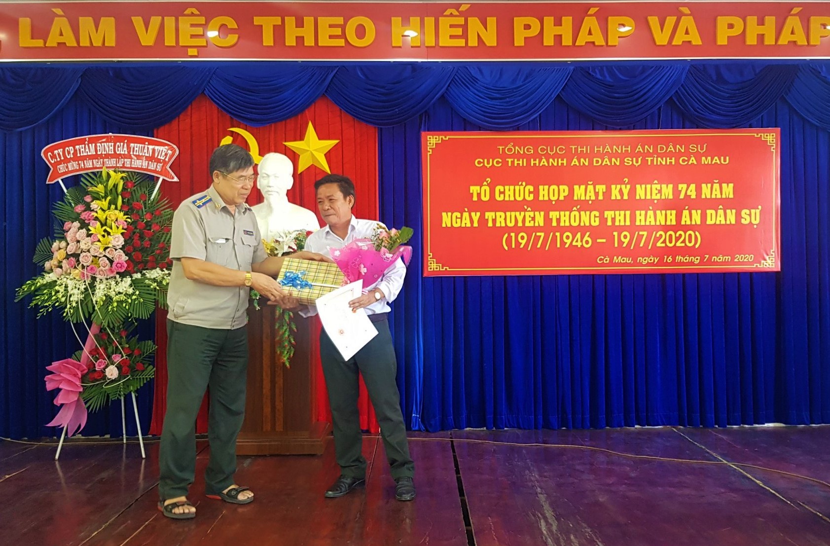Ngày 16/7/2020, Cục Thi hành án dân sự tỉnh Cà Mau tổ chức Họp mặt kỷ niệm 74 năm Ngày truyền thống Thi hành án dân sự (19/7/1946 - 19/7/2020) để công chức và người lao động các cơ quan Thi hành án dân sự tỉnh Cà Mau ôn lại quá trình hình thành và phát triển của Hệ thống thi hành án dân sự.