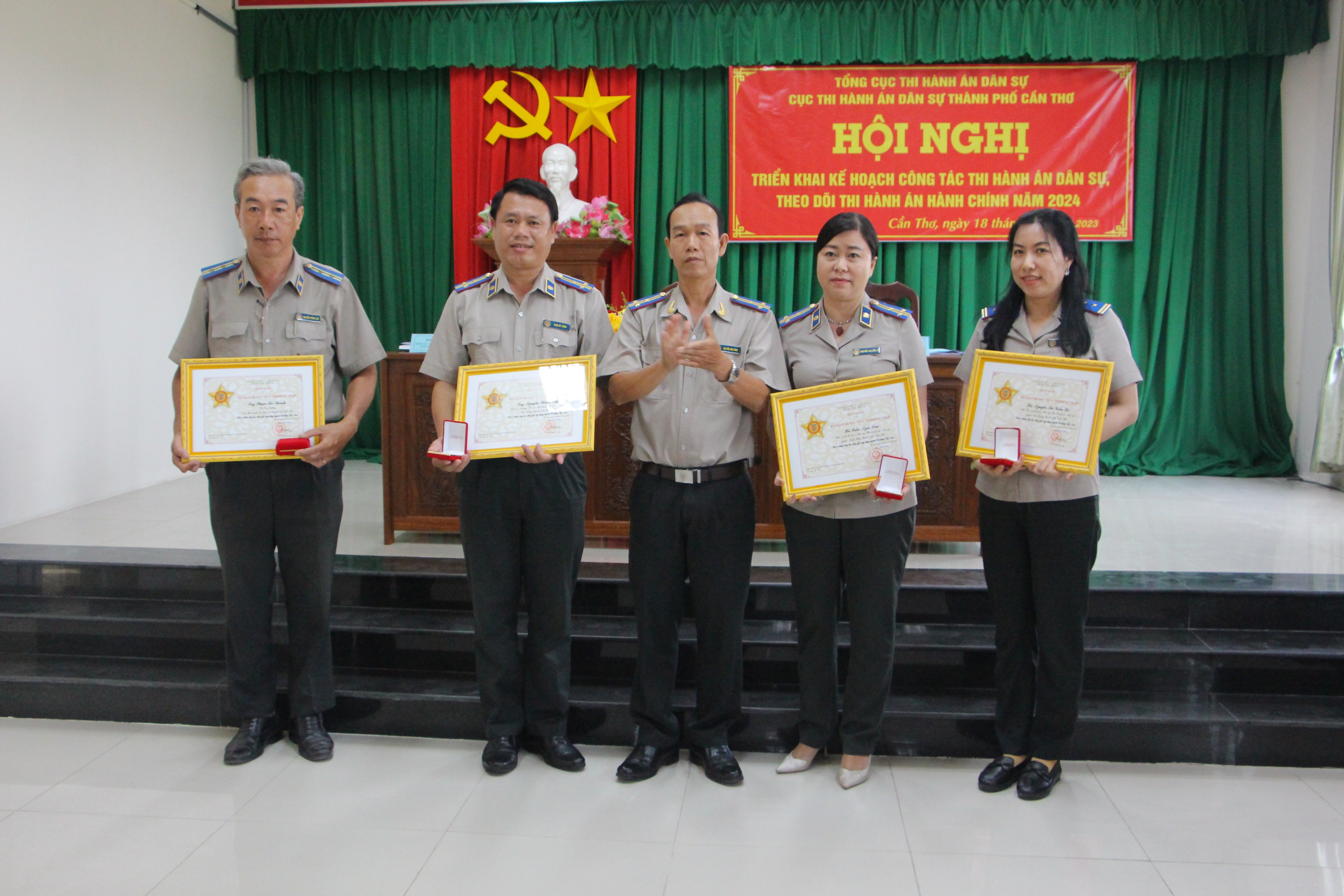 Nhân Hội nghị, Cục THADS thành phố đã công bố và trao khen thưởng cho 21 tập thể và cá nhân đạt thành tích xuất sắc trong năm 2023 được Bộ Tư pháp, Tổng cục THADS và Cục trưởng Cục THADS thành phố Cần Thơ khen thưởng./.
