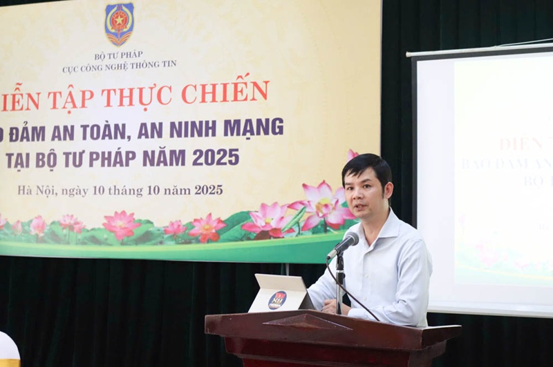 Nhằm nâng cao năng lực của thành viên Đội ứng cứu sự cố an toàn, an ninh mạng của Bộ Tư pháp, đơn vị chuyên trách về an toàn thông tin; đồng thời tăng cường bảo vệ cho hệ thống thông tin và giúp tuyên truyền cho các đơn vị thuộc Bộ về công tác đảm bảo an toàn, an ninh mạng tại Bộ Tư pháp, ngày 10/10, Cục Công nghệ thông tin tổ chức Diễn tập thực chiến đảm bảo an toàn an ninh mạng tại Bộ Tư pháp năm 2025.