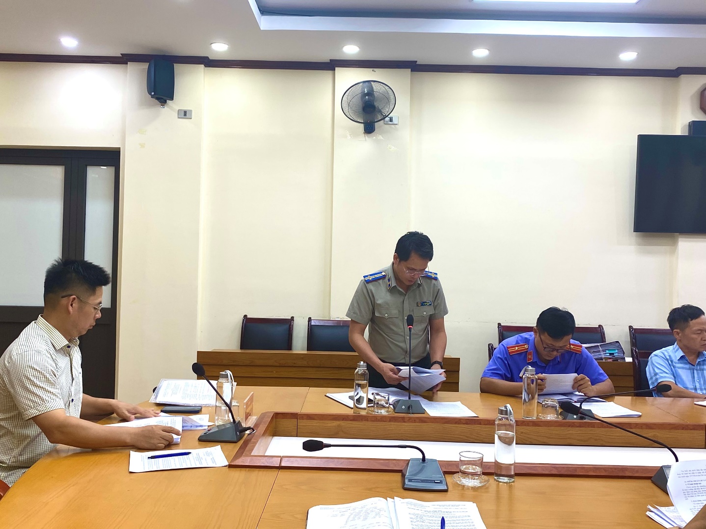 | Đồng chí Lý Văn Vĩnh - Chi cục trưởng Chi cục THADS thành phố Cao Bằng, Phó Trưởng Ban Chỉ đạo THADS thành phố Cao Bằng báo cáo tại cuộc họp. |