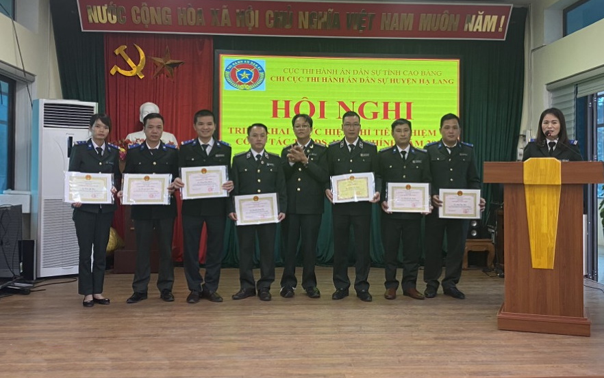Thực hiện Chương trình công tác năm 2022, được sự nhất trí của Lãnh đạo Cục Thi hành án dân sự tỉnh Cao Bằng và Thường trực UBND huyện Hạ Lang, chiều ngày 26/10/2021, Chi cục Thi hành án dân sự huyện Hạ Lang đã tổ chức Lễ công bố Quyết định bổ nhiệm Phó Chi cục trưởng; Hội nghị triển khai chỉ tiêu nhiệm vụ thi hành án dân sự, hành chính năm 2022 và lễ ký kết Quy chế phối hợp với UBND các xã, thị trấn trong công tác THADS.