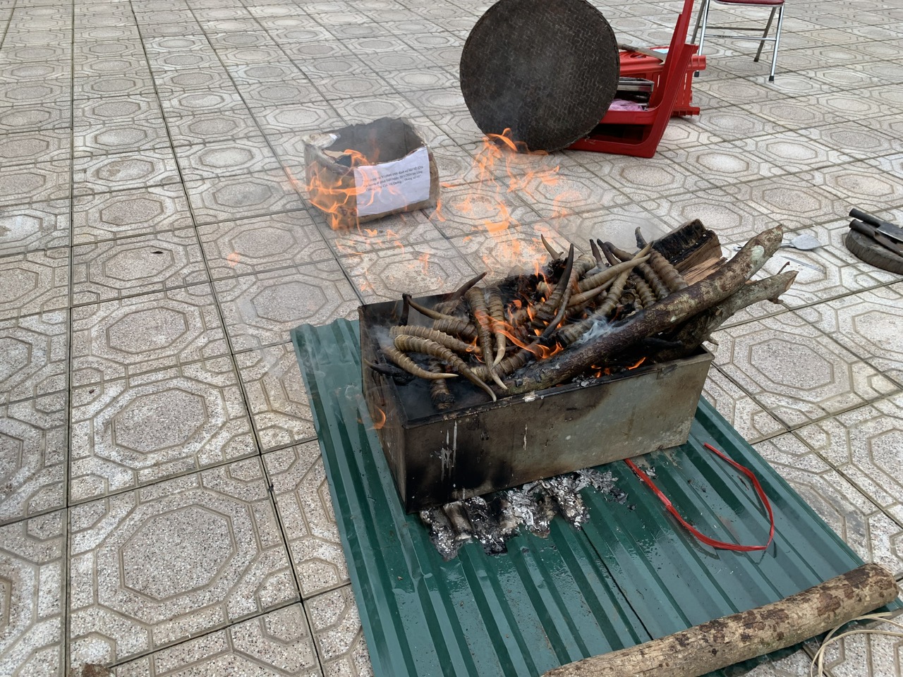 Trong đợt này thực hiện tiêu hủy 07 vụ việc, gồm các tang vật như sau: 03 thùng cát tông, bên trong chứa sừng Linh dương Đài Nguyên và các tang vật trong các vụ án hình sự khác.