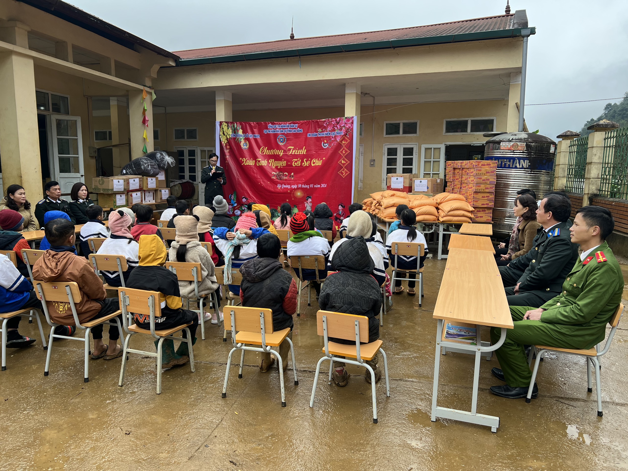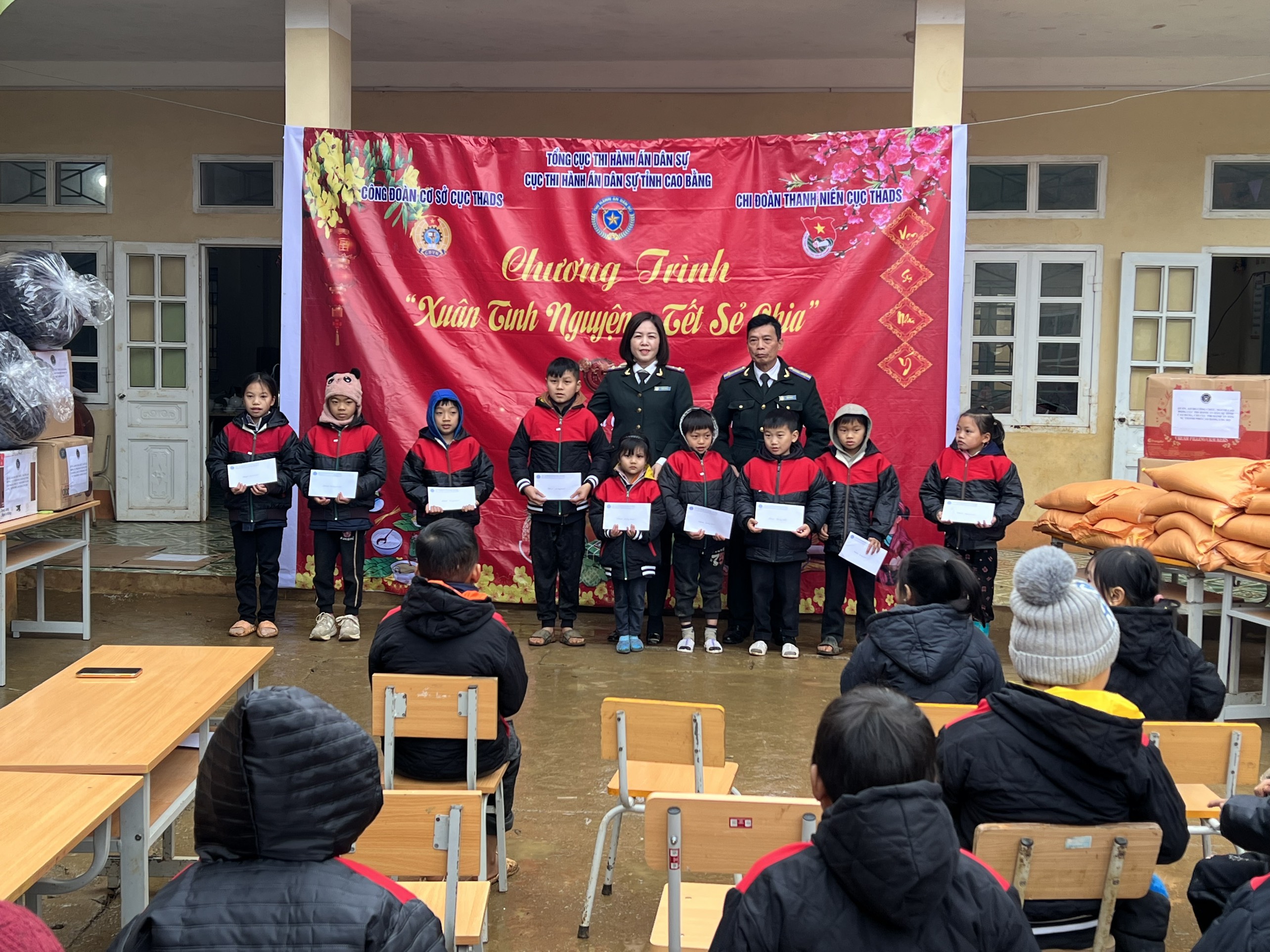 Thực hiện chương trình công tác Đoàn và phong trào thanh niên năm 2024 của Đoàn thanh niên khối cơ quan và doanh nghiệp tỉnh; tiếp tục hưởng ứng phong trào “Cả nước chung tay vì người nghèo – Không để ai bị bỏ lại phía sau” hướng tới các hoạt động Tết vì người nghèo nhân dịp Tết Nguyên đán Giáp Thìn 2024. Sáng ngày 29/01/2024 Đoàn thanh niên phối hợp với Công đoàn Cục Thi hành án dân sự tỉnh Cao Bằng tổ chức hoạt động thiện nguyện thăm hỏi, tặng quà các em học sinh tiểu học tại Điểm trường Lũng Gà thuộc trường Tiểu học & Trung học cơ sở Vị Quang, xã Cần Yên, huyện Hà Quảng, tỉnh Cao Bằng.