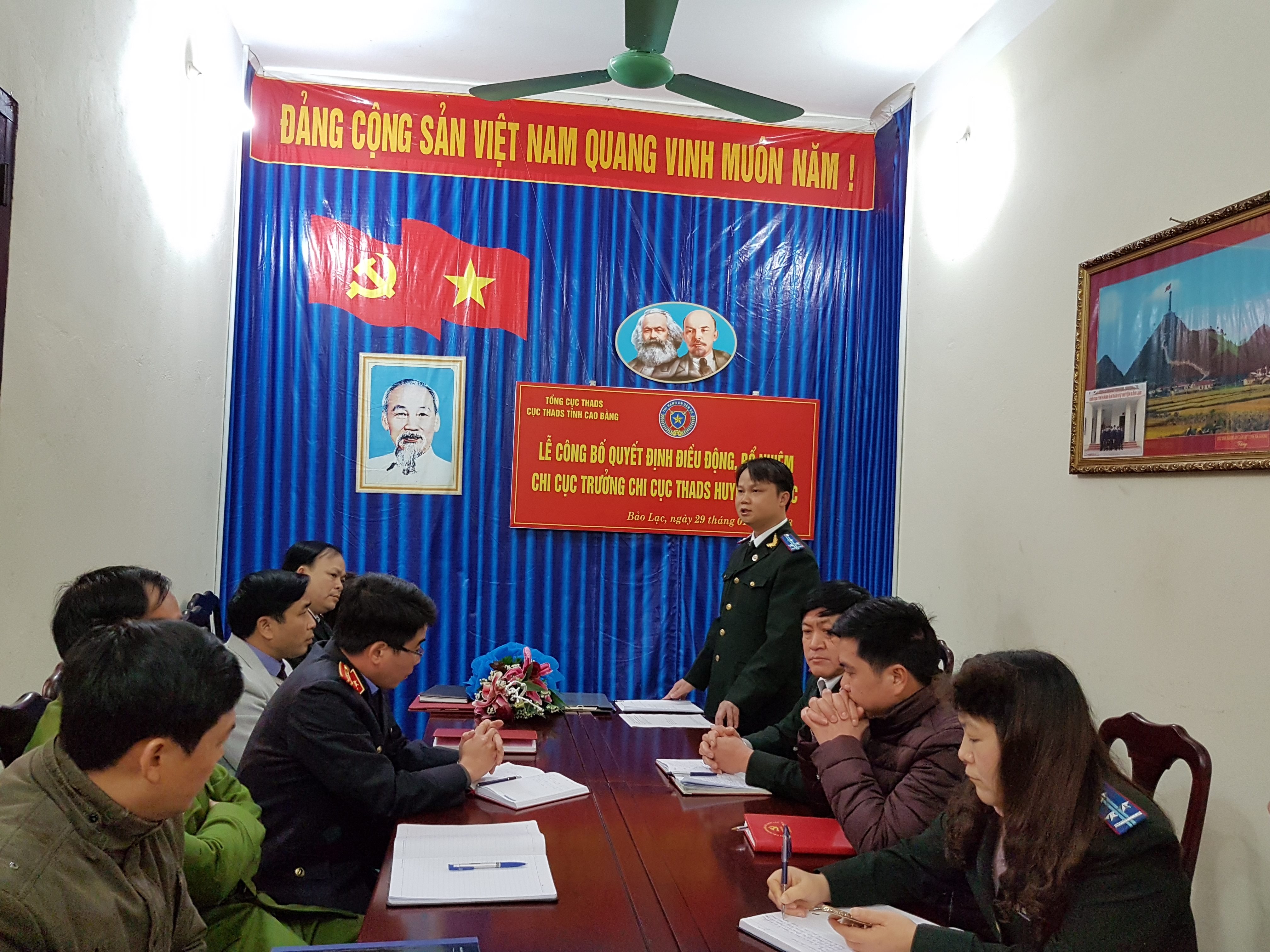 Công bố quyết định điều động, bổ nhiệm Chi cục trưởng Chi cục THADS huyện Bảo Lạc