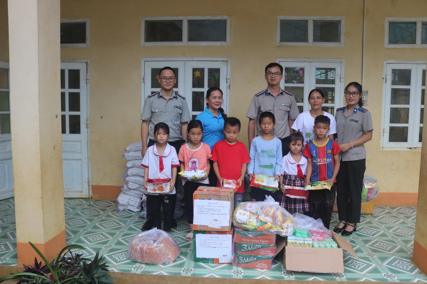 Tại đây, đoàn đã trao hơn 200kg gạo và nhiều vật dụng, nhu yếu phẩm thiết yếu trao cho các em học sinh có hoàn cảnh khó khăn, bị ảnh hưởng bởi bão lũ, giúp các em sớm ổn định tinh thần và tiếp tục việc học.
