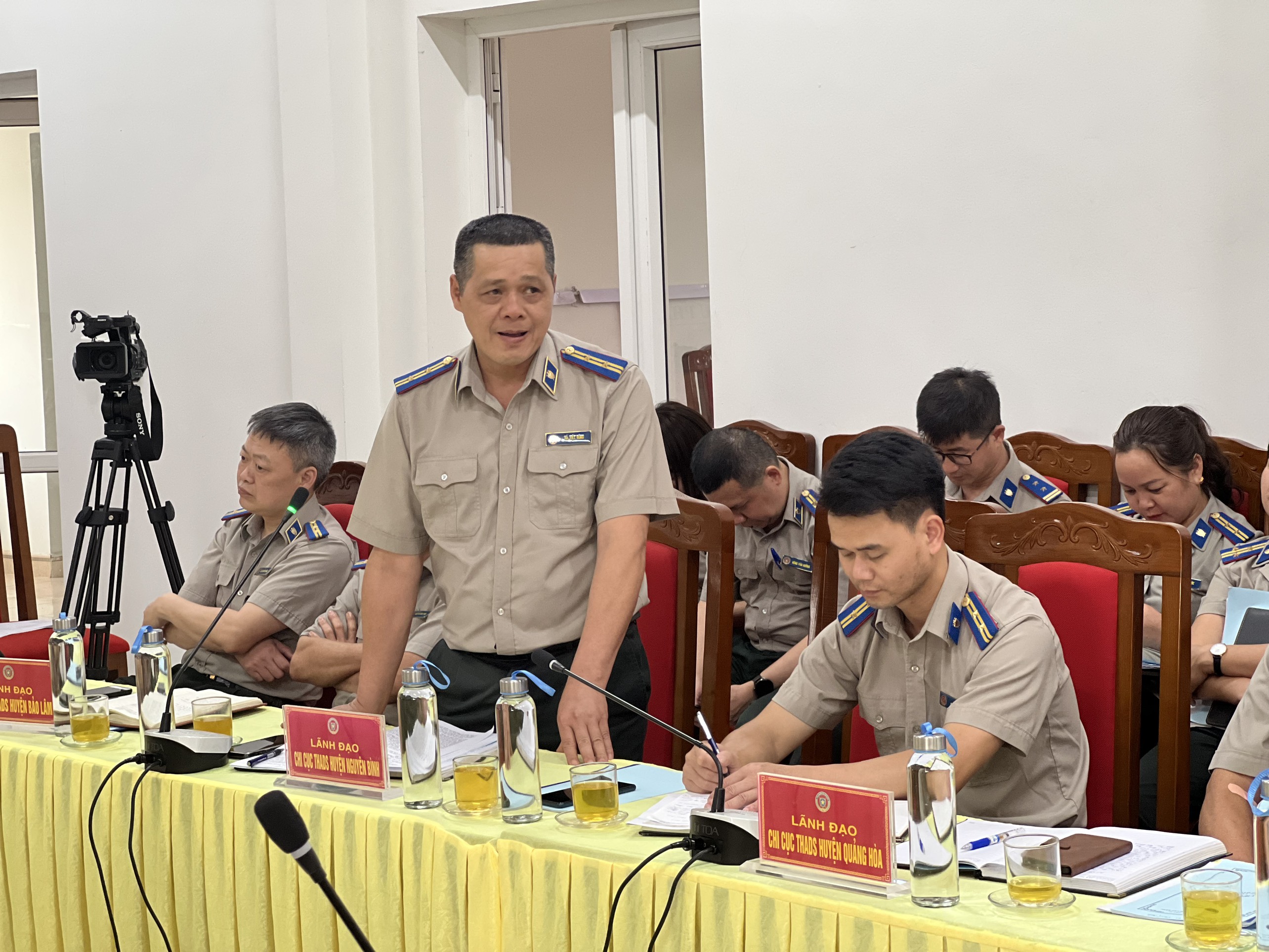 Để lắng nghe ý kiến và nắm rõ hơn tình hình thực hiện các nhiệm vụ tại các đơn vị, đồng chí Đoàn Thị Hạ - Cục trưởng Cục THADS đã chủ trì thảo luận, yêu cầu các đơn vị báo cáo tình hình thực hiện nhiệm vụ tại các đơn vị, đưa ra câu hỏi, các vấn đề cần giải đáp. Tại cuộc họp các thành viên tham dự đã báo cáo tình hình thực hiên công tác tự kiểm ra đến thời điểm hiện tại, án tín dụng tại đơn vị, tình hình, phương án giải quyết đối với những vụ việc trọng điểm, tồn đọng, kéo dài và đưa ra một số câu hỏi liên quan đến quy trình, thủ tục THADS, công tác tự kiểm tra, công tác tổ chức cán bộ, bảo vệ bí mật nhà nước…Sau quá trình thảo luận đồng chí Đoàn Thị Hạ cùng lãnh đạo các phòng chuyên môn nghiệp vụ tại Cục đã giải đáp các câu hỏi có liên quan và đề nghị các đơn vị thường xuyên hỏi ý kiến, báo cáo Cục khi giải quyết các vụ việc, công việc phức tạp, khó giải quyết.