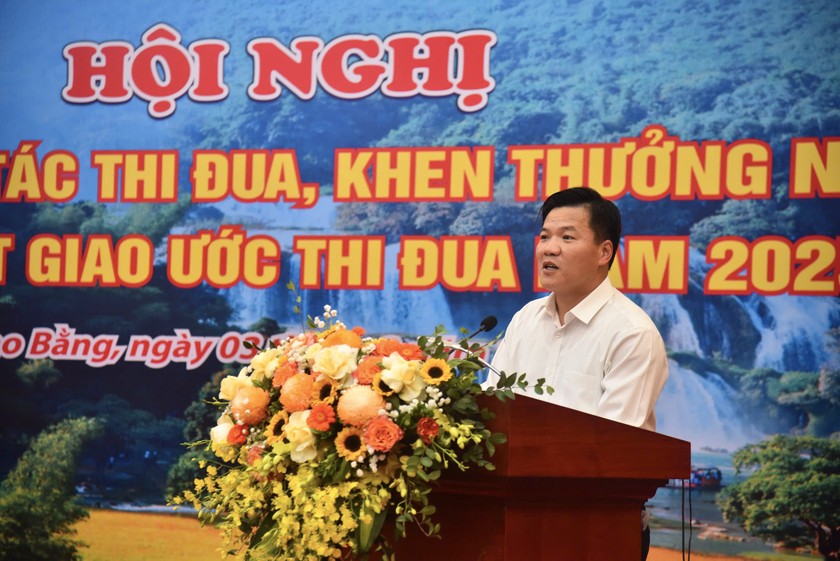 | Ông Trịnh Tường Huy, Phó Chủ tịch UBND tỉnh Cao Bằng phát biểu tại Hội nghị |