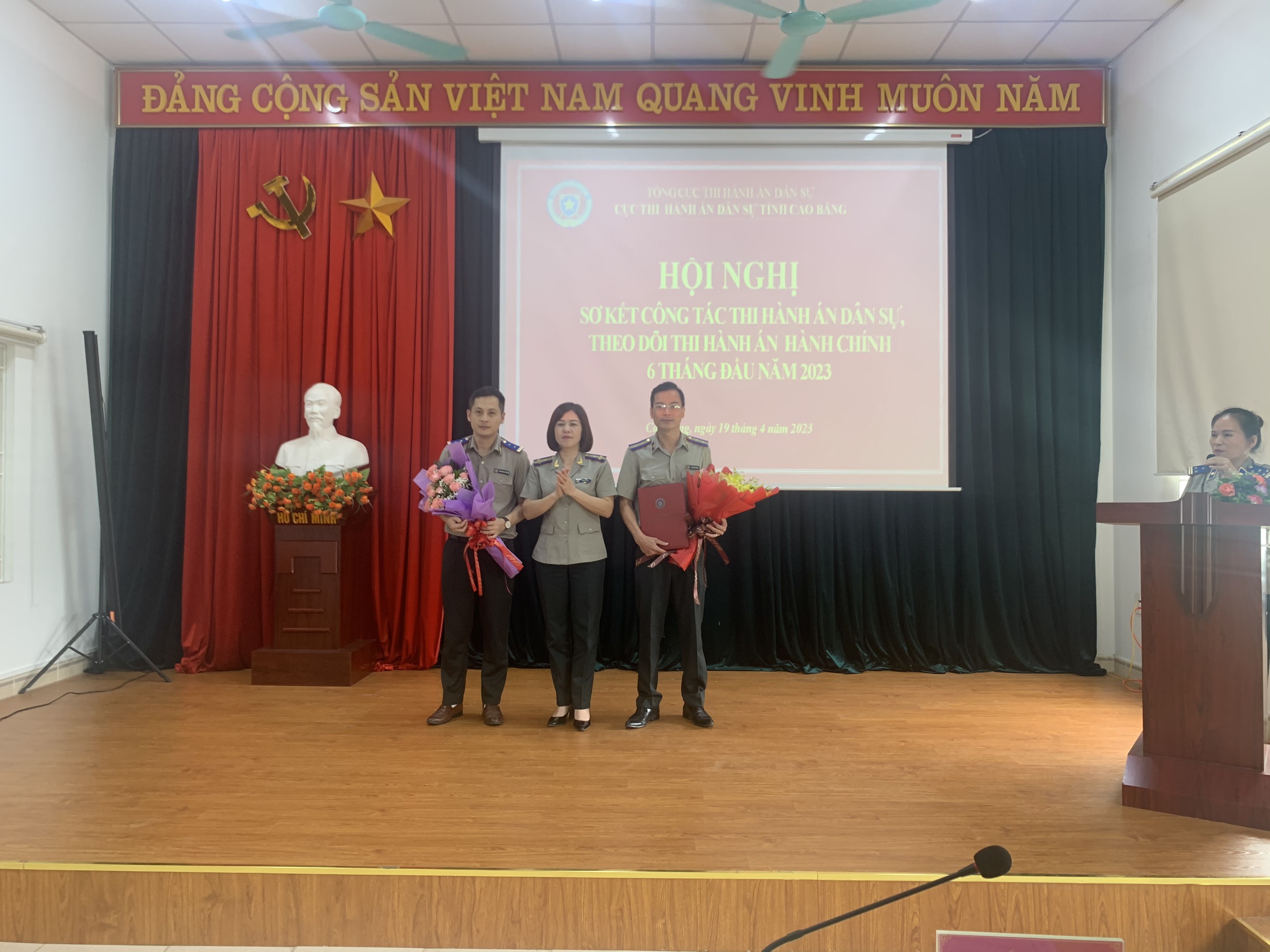 Sáng ngày 19/4/2023 tại Cục Thi hành án dân sự (THADS) tỉnh Cao Bằng đã tổ chức Hội nghị giao ban công tác THADS, theo dõi thi hành án hành chính 06 tháng năm 2023. Hội nghị do đ/c Đoàn Thị Hạ - Cục trưởng Cục THADS tỉnh Cao Bằng chỉ đạo và chủ trì. Tham dự Hội nghị có các đ/c Lãnh đạo Cục, lãnh đạo phòng chuyên môn, Chấp hành viên, Thẩm tra viên; Thư ký, Kế toán và Chuyên viên tại Cục, về phía các Chi cục trực thuộc có các đ/c lãnh đạo Chi cục và Chấp hành viên.