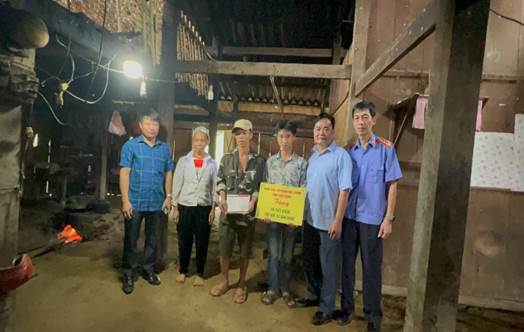 Đoàn 1 gồm các cơ quan: Cục Thi hành án dân sự, Viện kiểm sát nhân dân tỉnh, Bộ chỉ huy quân sự và Sở Tư pháp thực hiện trao quà tại huyện Nguyên Bình cho các em: Hoàng Vần Kiêm, học sinh lớp 9 trường Phổ thông dân tộc bán trú - THCS Hưng Đạo, địa chỉ: Xóm Khuổi Lỉn, xã Hưng Đạo và em Phùng Kiềm Luồng, học sinh lớp 8A trường Phổ thông dân tộc bán trú - THCS Phan Thanh, xã Phan Thanh.