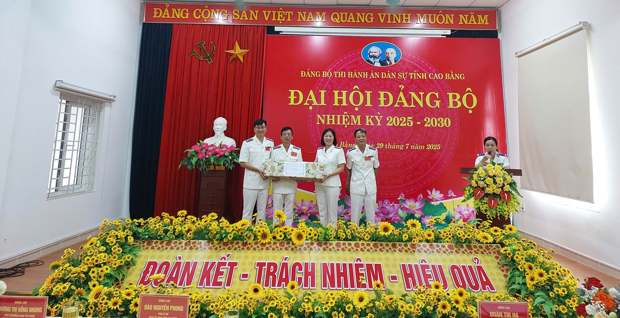 Tham dự buổi lễ có đồng chí Đoàn Thị Hạ – Trưởng Thi hành án dân sự tỉnh Cao Bằng; đồng chí Nông Tiến Dũng – Phó Trưởng Thi hành án dân sự tỉnh Cao Bằng; đồng chí Chu Thanh Hà – Phó Trưởng Thi hành án dân sự tỉnh Cao Bằng; Lãnh đạo các phòng chuyên môn, lãnh đạo và đảng viên của các Phòng Thi hành án dân sự khu vực; toàn thể công chức, người lao động đang công tác tại Thi hành án dân sự tỉnh.
