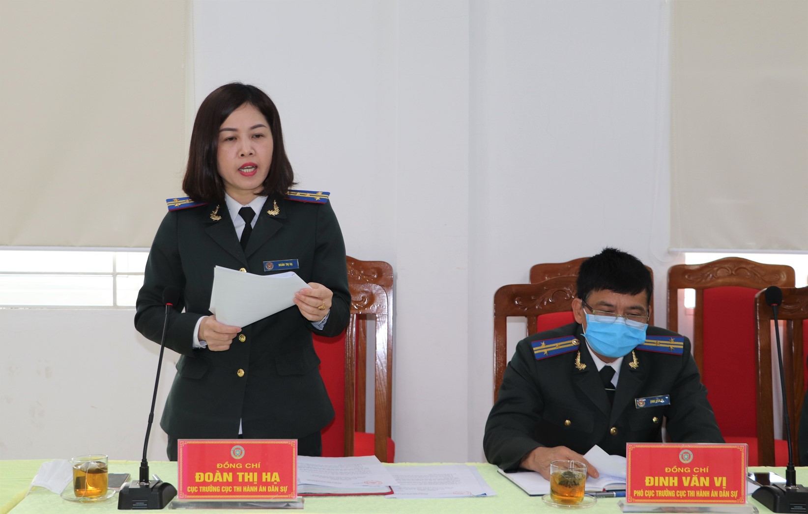 | Đồng chí Đoàn Thị Hạ Cục trưởng Cục THADS báo cáo tại buổi làm việc |