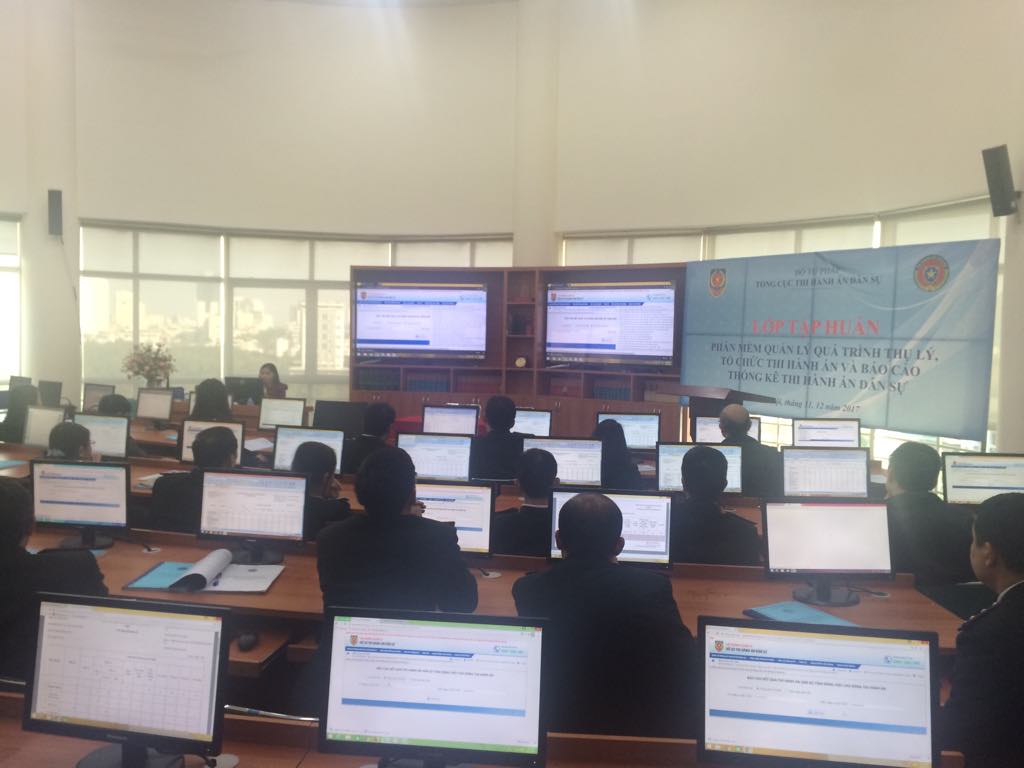 Thực hiện Quyết định số 2249/QĐ-BTP ngày 08/11/2017 của Bộ trưởng Bộ Tư pháp ban hành Kế hoạch tập huấn, triển khai phần mềm quản lý quá trình thụ lý, tổ chức thi hành án và báo cáo thống kê thi hành án dân sự trong Hệ thống thi hành án dân sự, ngày 20/12/2017 tại Hà Nội, Tổng Cục Thi hành án dân sự đã tổ chức lớp tập huấn, triển khai phần mềm quản lý quá trình thụ lý, tổ chức thi hành án và báo cáo thống kê thi hành án dân sự trong Hệ thống thi hành án dân sự cho 43 học viên là lãnh đạo, Chấp hành viên, công chức làm công tác tiếp nhận thụ lý, thống kê, tin học của Cục Thi hành án dân sự và 13 Chi cục Thi hành án dân sự huyện, thành phố tỉnh Cao Bằng.