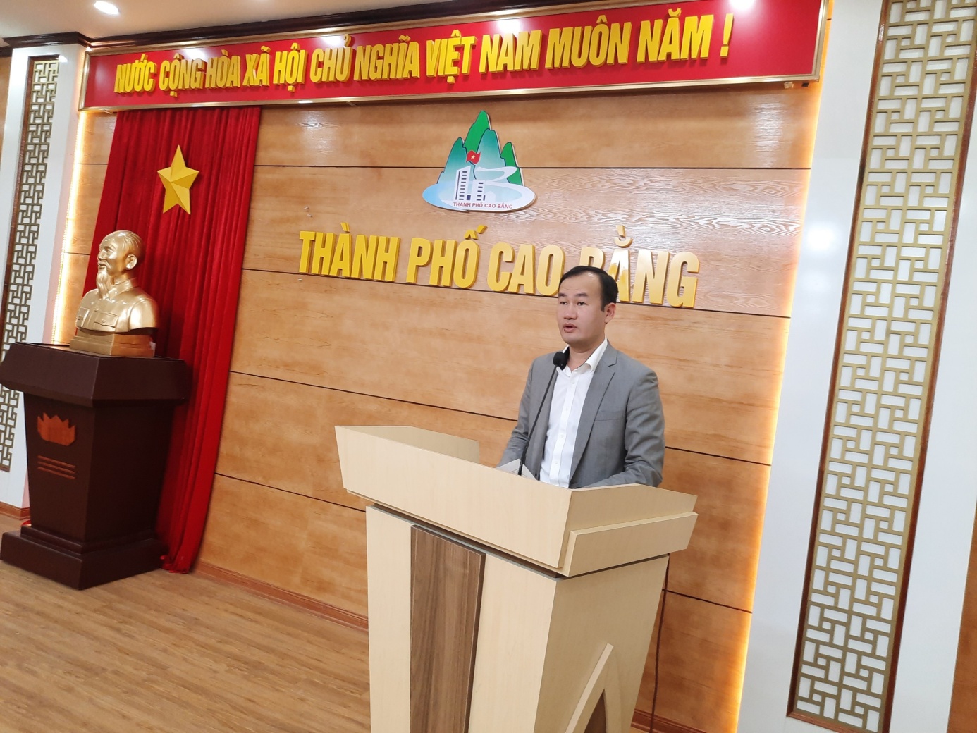 | Đồng chí Tô Vũ Ninh - Phó Bí thư thường trực Thành uỷ Cao Bằng, Chủ tịch HĐND thành phố phát biểu tại Hội nghị |