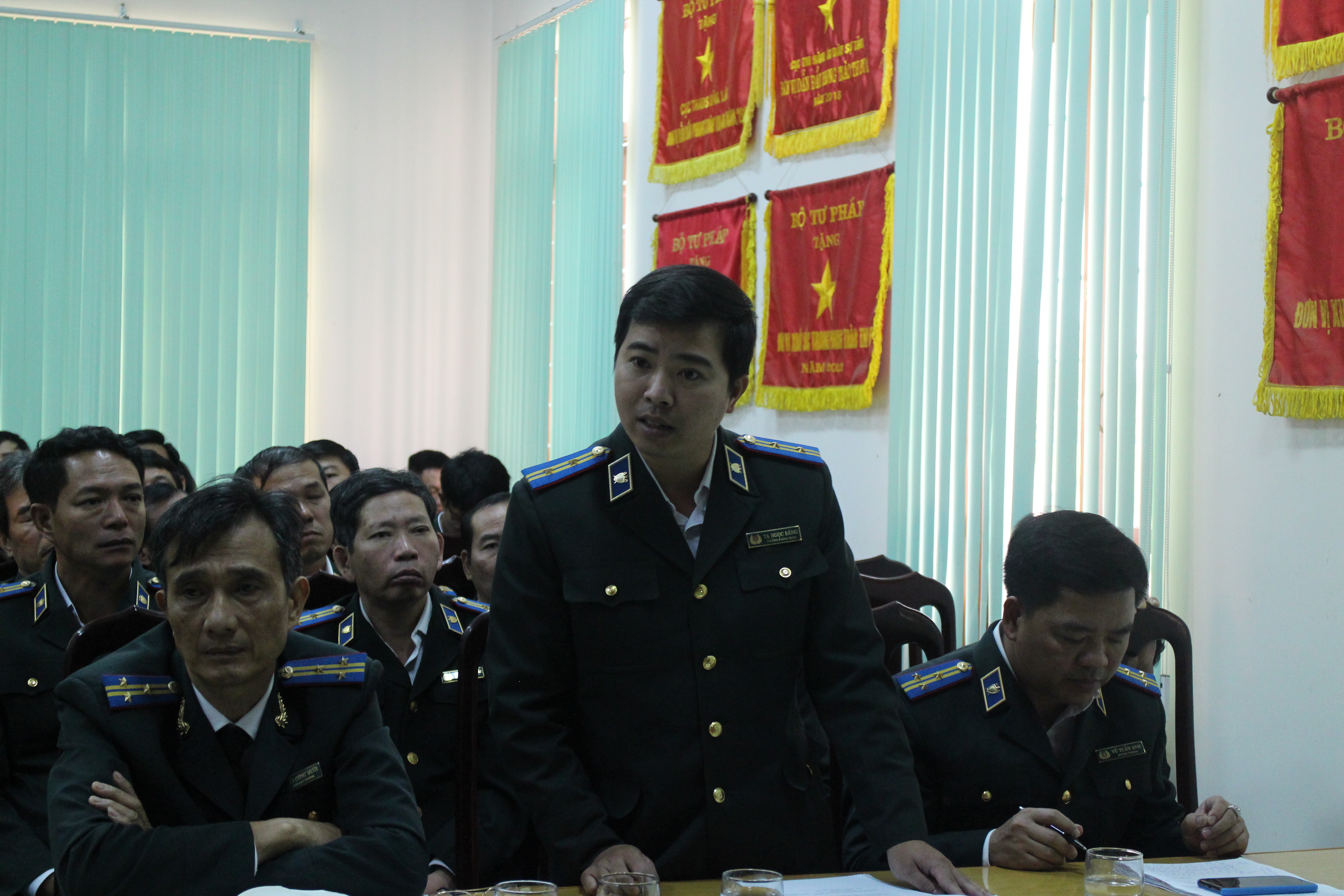 Đồng chí Cục trưởng yêu cầu Thủ trưởng các đơn vị thuộc Cục và Chi cục trưởng các Chi cục Thi hành án dân sự trực thuộc phải nêu cao tinh thần trách nhiệm, quyết liệt trong tổ chức thi hành án, triển khai và thực hiện có hiệu quả các phần mềm về thi hành án dân sự; yêu cầu các đơn vị đã thành lập Bộ phận một cửa tại đơn vị phải thực hiện cơ chế một cửa đạt hiệu quả cao nhất; tăng cường kỷ cương, kỷ luật thực thi công vụ, nhất là thời gian làm việc, tính thứ bậc trong cơ quan hành chính nhà nước; thực hiện có hiệu quả công tác phòng ngừa tiêu cực, tham nhũng trong hoạt động thi hành án dân sự; tiếp tục đẩy mạnh công tác cải cách Tư pháp, cải cách thủ tục hành chính; tăng cường ứng dụng công nghệ thông tin trong hoạt động quản lý, chỉ đạo, điều hành và công tác chuyên môn, nghiệp vụ; chú trọng và thường xuyên kiểm tra việc thực hiện nghiêm túc chế độ tài chính, kế toán và kế toán nghiệp vụ thi hành án; chú trọng công tác tiếp công dân, giải quyết đơn thư khiếu nại, tố cáo về thi hành án phải nghiêm túc, kịp thời, đúng pháp luật với trách nhiệm cao; việc quản lý, bảo vệ trụ sở, kho vật chứng, quản lý tài sản công, nhất là sử dụng xe ô tô công của các đơn vị phải đúng quy định, nghiêm cấm việc sử dụng xe công vào việc cá nhân.