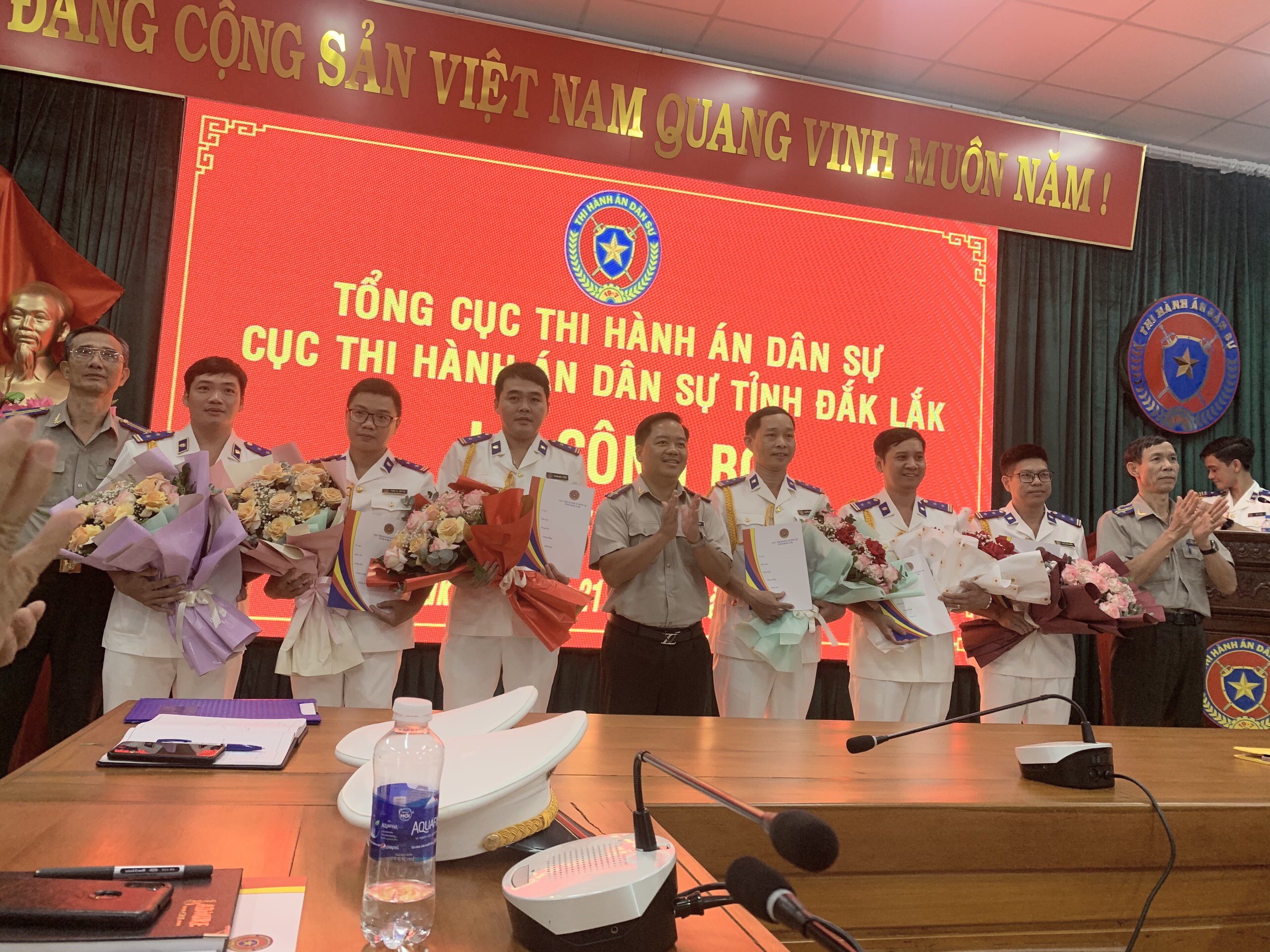 Chiều ngày 21/8/2023, Thừa ủy quyền của Bộ Tư pháp, Tổng cục Thi hành án dân sự, Cục Thi hành án dân sự tỉnh Đắk Lắk đã long trọng tổ chức Lễ công bố và trao Quyết định bổ nhiệm Thẩm tra viên chính cho 02 công chức, bổ nhiệm Thẩm tra viên cho 04 công chức và bổ nhiệm Chấp hành viên sơ cấp cho 06 công chức. Đồng thời, Cục Thi hành án dân sự tỉnh Đắk Lắk cũng trao Quyết định bổ nhiệm lại chức vụ Trưởng phòng Nghiệp vụ và tổ chức thi hành án dân sự.