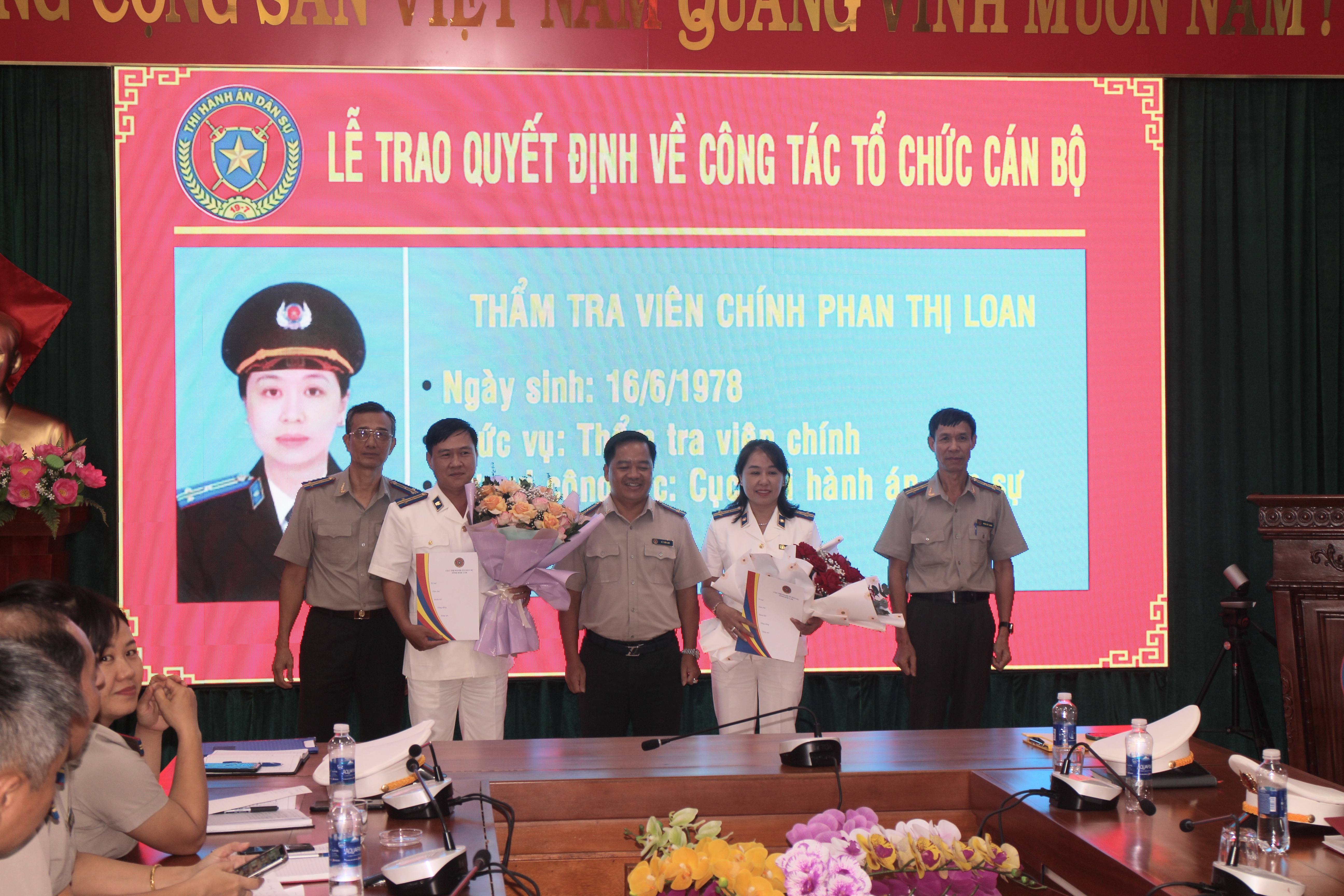 Sau thời gian thực hiện quy trình về công tác cán bộ, các công chức được bổ nhiệm, bổ nhiệm lại trong đợt này gồm có: đồng chí Phan Hùng Dũng bổ nhiệm lại chức vụ Trưởng phòng Nghiệp vụ và tổ chức Thi hành án dân sự; đồng chí Nguyễn Minh Tuấn - Trưởng phòng và đồng chí Phan Thị Loan - Phó trưởng Phòng Kiểm tra, giải quyết khiếu nại tố cáo được bổ nhiệm Thẩm tra viên chính; các đồng chí Đỗ Đất Đạt - Trưởng phòng Tổ chức cán bộ, Vũ Thị Hồng Liên - Thư ký Thi hành án Cục THADS tỉnh, Lê Hoàng Đức Thái - Thư ký Thi hành án Chi cục Thi hành án dân sự huyện Krông Ana, Nguyễn Thị Thúy - Thư ký Thi hành án Chi cục Thi hành án dân sự thị xã Buôn Hồ được bổ nhiệm Thẩm tra viên; các đồng chí Lê Danh Hải - Phó Chánh văn phòng, Phạm Minh Tuyến - Thư ký Thi hành án Chi cục Thi hành án dân sự huyện Ea H'leo, Trần Trọng Việt Hà - Thư ký Thi hành án Chi cục Thi hành án dân sự huyện Krông Púk, Nguyễn Đình Vinh - Thư ký Thi hành án Chi cục Thi hành án dân sự huyện Krông Năng, Võ Thành Luân - Thư ký Thi hành án Chi cục Thi hành án dân sự huyện Cư M'gar được bổ nhiệm Chấp hành viên sơ cấp.