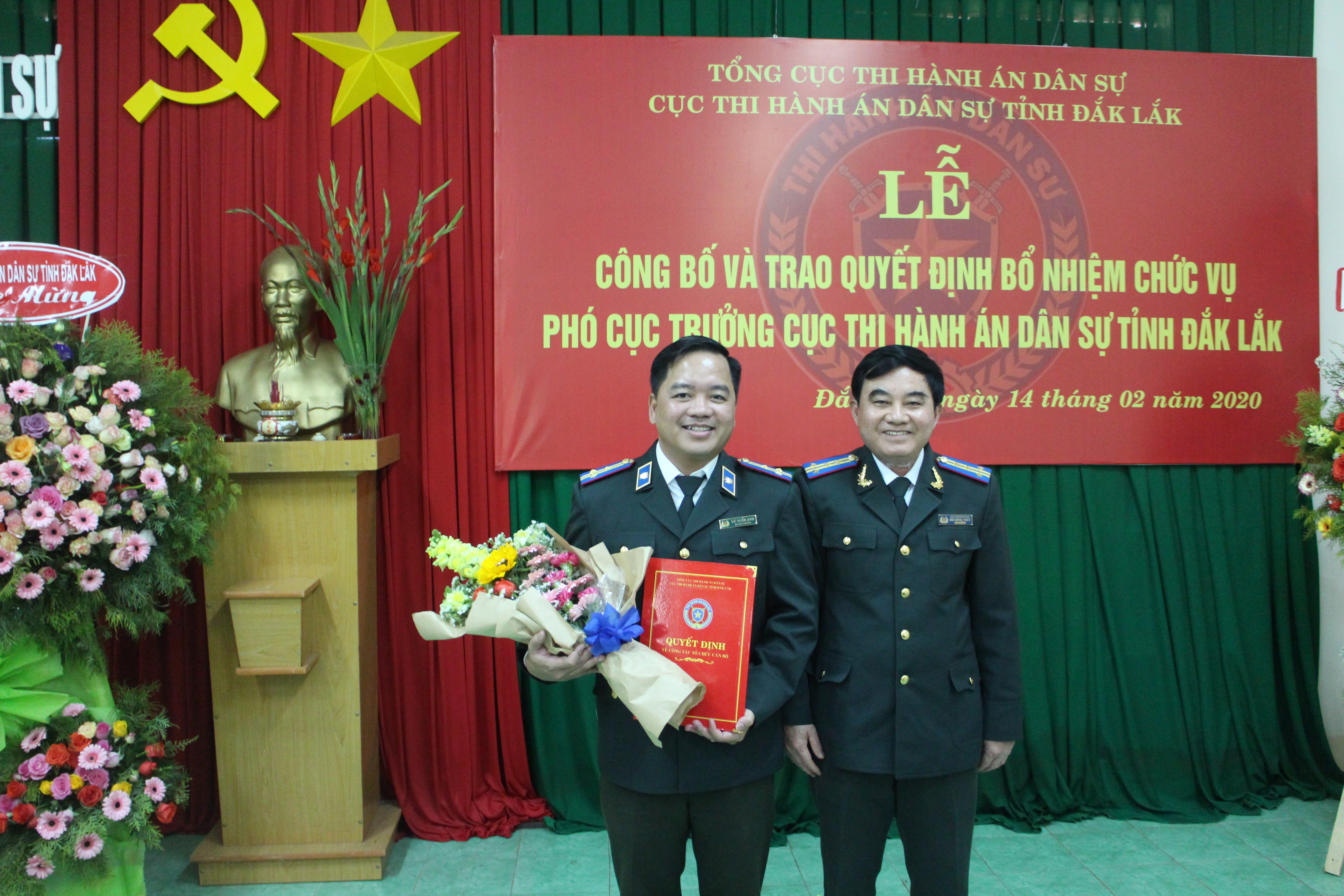 Chiều ngày 14/02/2020, Cục Thi hành án dân sự tỉnh Đắk Lắk tổ chức Lễ công bố và trao Quyết định bổ nhiệm Phó cục trưởng Cục Thi hành án dân sự tỉnh Đắk Lắk đối với đồng chí Vũ Tuấn Anh, Chi cục trưởng Chi cục Thi hành án dân sự thành phố Buôn Ma Thuột.