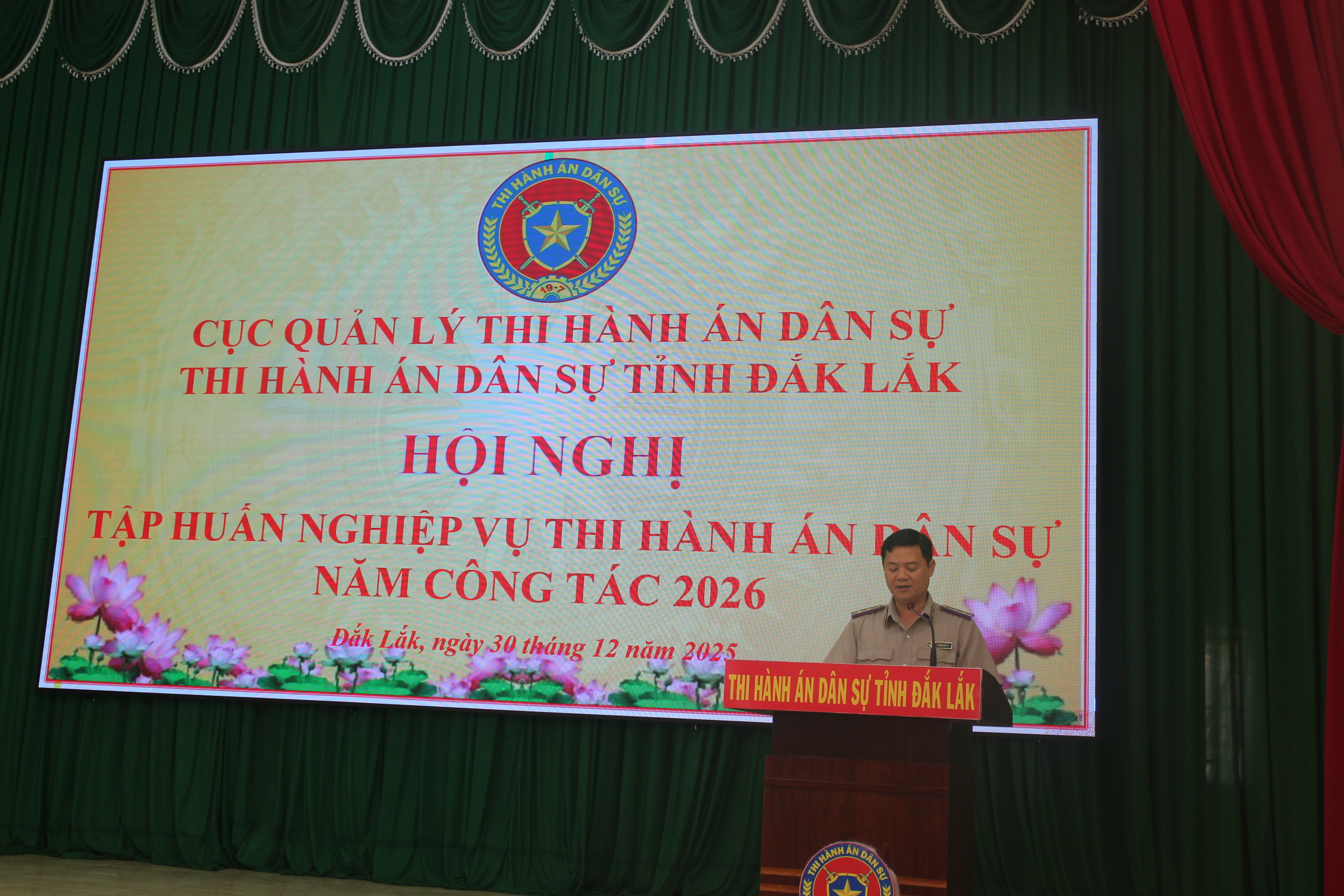 Thi hành án dân sự tỉnh Đắk Lắk đã tổ chức hội nghị Tập huấn nghiệp vụ Thi hành án dân sự; Tổng kết công tác THADS năm 2025 và triển khai nhiệm vụ, chỉ tiêu năm 2026