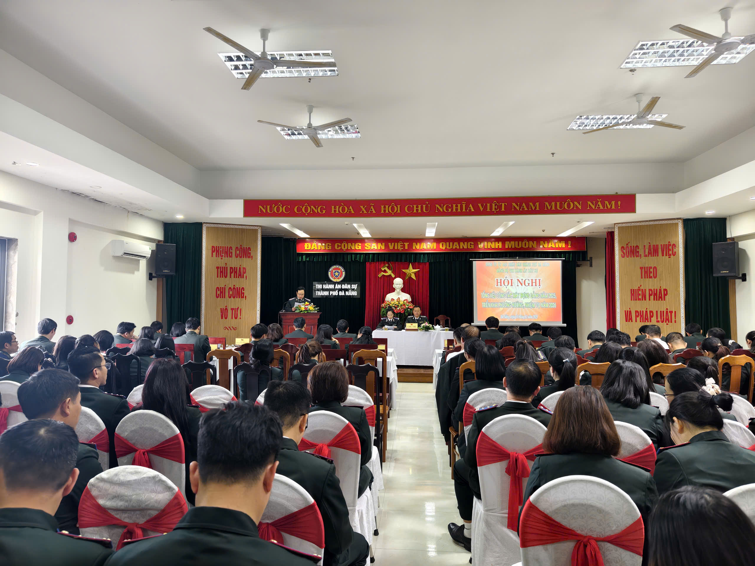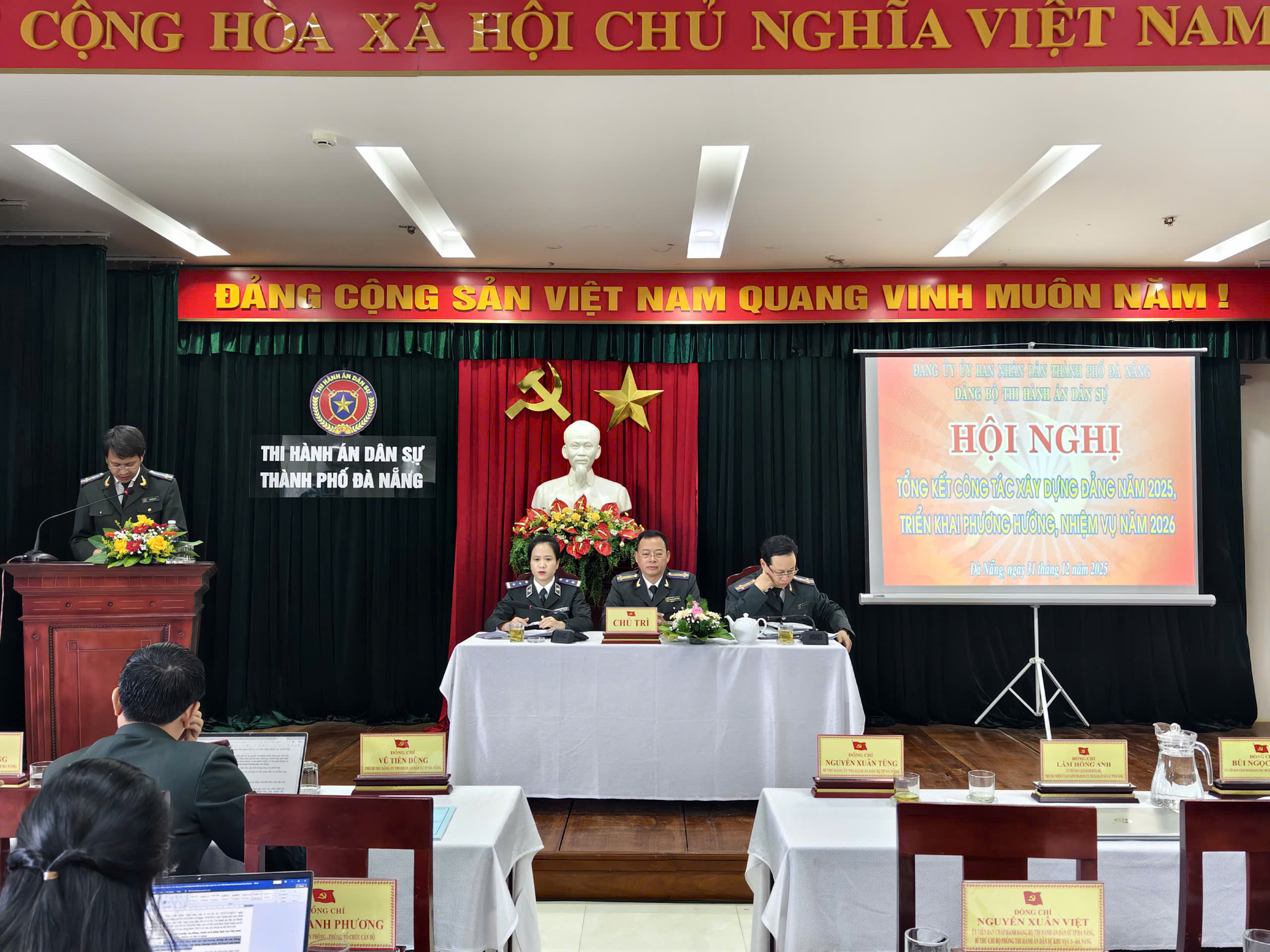 Chiều ngày 31/12, Đảng bộ Thi hành án dân sự thành phố Đà Nẵng tổ chức Hội nghị tổng kết công tác xây dựng Đảng năm 2025, triển khai phương hướng, nhiệm vụ năm 2026. Hội nghị nhằm đánh giá kết quả công tác lãnh đạo, chỉ đạo năm 2025; xác định phương hướng, nhiệm vụ, giải pháp trọng tâm năm 2026 và và xem xét một số nội dung thuộc thẩm quyền.