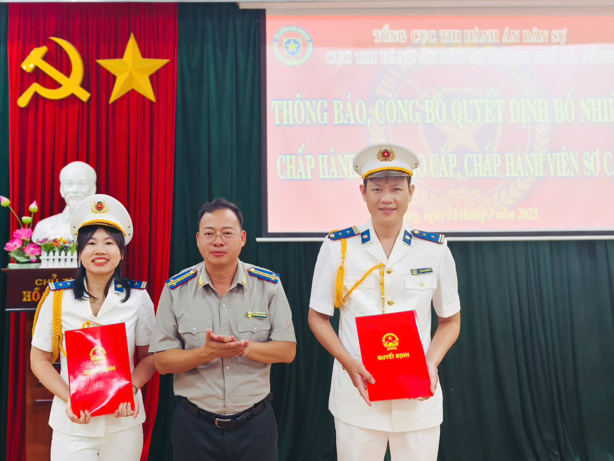 Ngày 12/3/2025, tại cuộc họp giao ban công tác thi hành án dân sự, theo dõi thi hành án hành chính 05 tháng đầu năm 2025, Cục Thi hành án dân sự thành phố Đà Nẵng tổ chức thông báo và công bố, trao quyết định bổ nhiệm ngạch Chấp hành viên cao cấp, Chấp hành viên sơ cấp năm 2025: