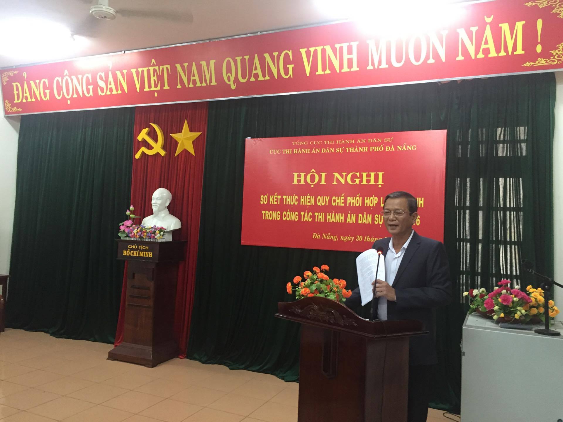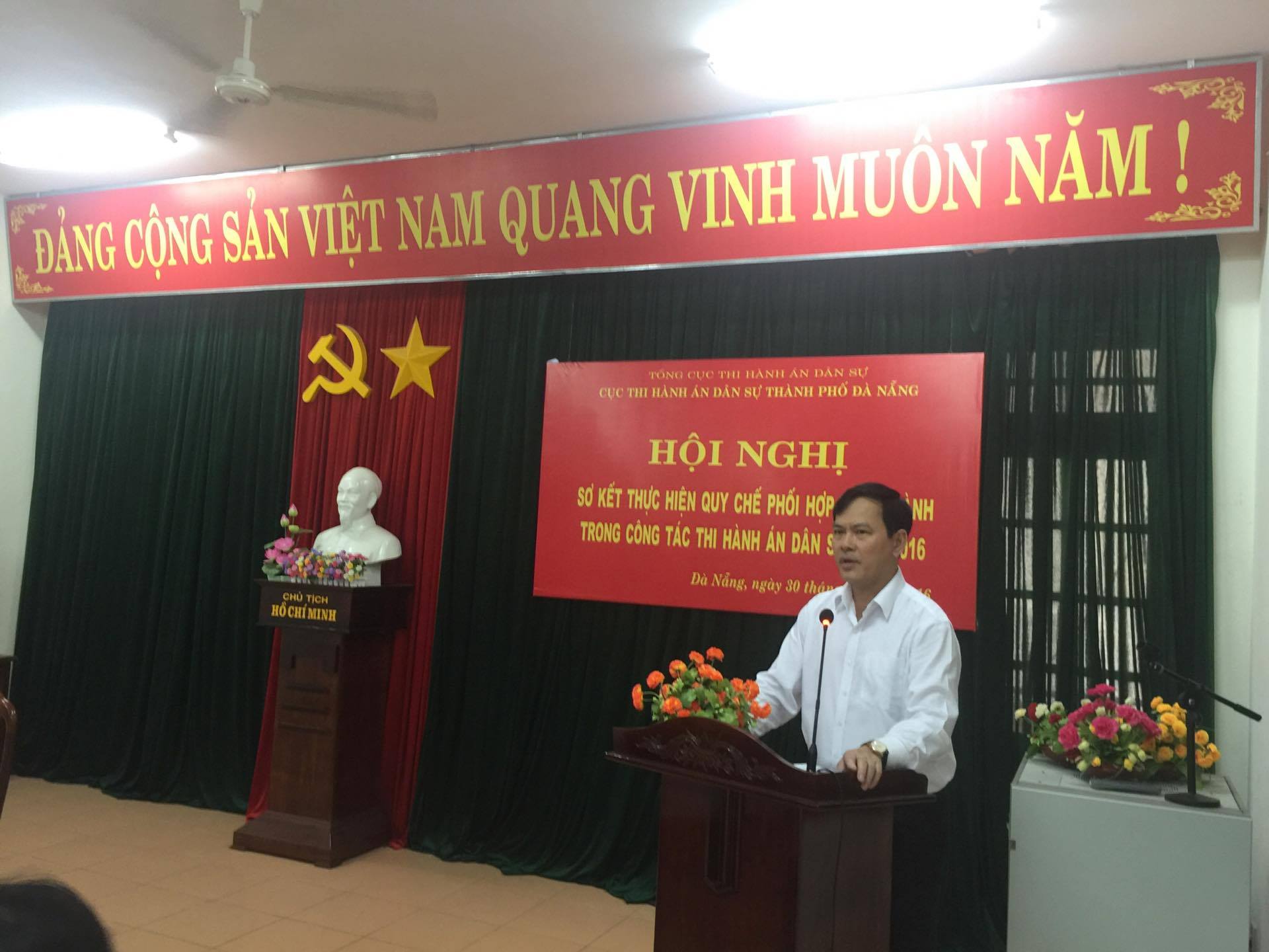 Thực hiện kế hoạch số 3981/KH-BTP ngày 08/11/2016 của Bộ Tư pháp về việc tổ chức sơ kết việc thực hiện Quy chế số 14/2013/QCLN/BTP-BCA-TANDTC-VKSNDTC ngày 09/10/2013 của Bộ Tư pháp, Bộ Công an, Tòa án nhân dân tối cao, Viện kiểm sát nhân dân tối cao về phối hợp liên ngành trong công tác thi hành án dân sự năm 2016 và Công văn số 3664/TCTHADS-NV1 ngày 04/11/2016 về việc sơ kết Quy chế phối hợp liên ngành trong công tác thi hành án dân sự, ngày 30/11/2016, Cục Thi hành án dân sự thành phố Đà Nẵng đã phối hợp với Viện Kiểm sát nhân dân thành phố, Công an thành phố và Tòa án nhân dân thành phố tổ chức Hội nghị sơ kết thực hiện Quy chế phối hợp liên ngành trong công tác thi hành án dân sự năm 2016.