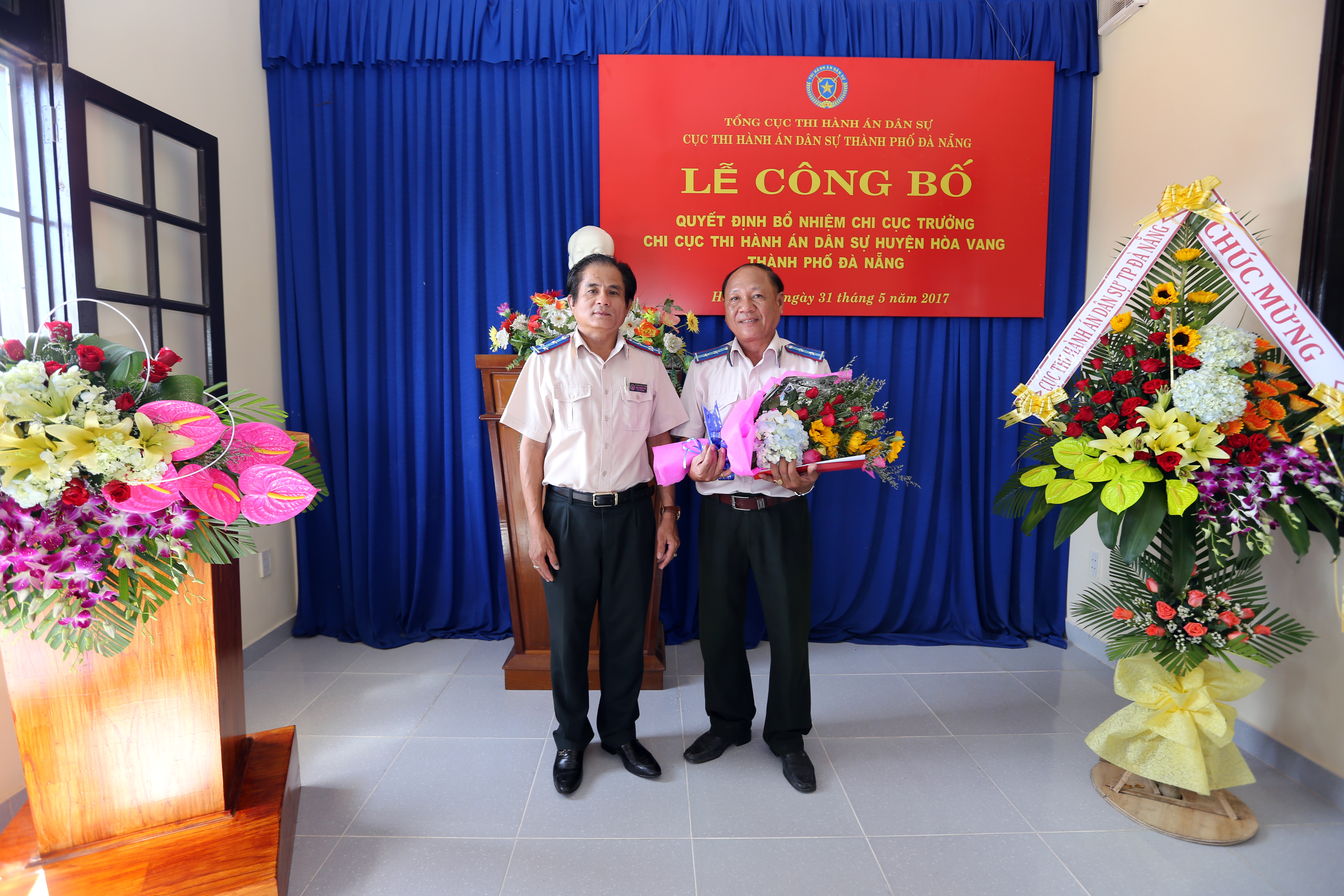 Sáng ngày 31/5/2017, Cục Thi hành án dân sự thành phố Đà Nẵng đã tổ chức lễ công bố, trao Quyết định số 564/QĐ-TCTHADS ngày 18/5/2017 của Tổng cục trưởng Tổng Cục Thi hành hành án dân sự về việc bổ nhiệm đồng chí Trần Hùng (Quyền Chi cục trưởng, Chi cục Thi hành án dân sự huyện Hòa vang) giữ chức Chi cục trưởng Chi cục Thi hành án dân sự huyện Hòa Vang kể từ ngày 01 tháng 6 năm 2017.