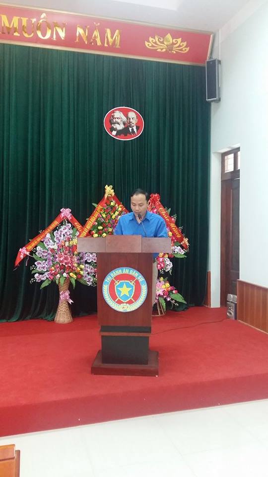 Đồng chí Vũ Đức Hải; Bí thư BCH Đoàn thanh niên Cục THADS tỉnh nhiệm kỳ 2017-2019 phát biểu tại Đại hội.