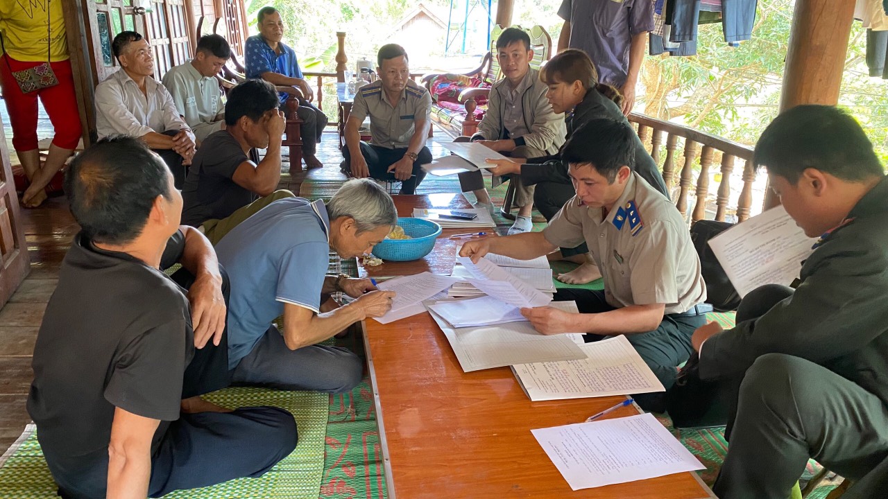 Thực hiện kế hoạch công tác tháng 01/2024, ngày 04/01/2024 tại bản Phủ, xã Quài Cang, huyện Tuần Giáo, Chi cục THADS huyện Tuần Giáo tổ chức trao trả Giấy chứng nhận quyền sử dụng đất cho các hộ dân trong các Vụ án tranh chấp hợp đồng góp vốn bằng giá trị quyền sử dụng đất giữa các Hộ gia đình nông dân ở bản Phủ, xã Quài Cang, huyện Tuần Giáo với Công ty cổ phần cà phê Thái Hòa Mường Ảng.