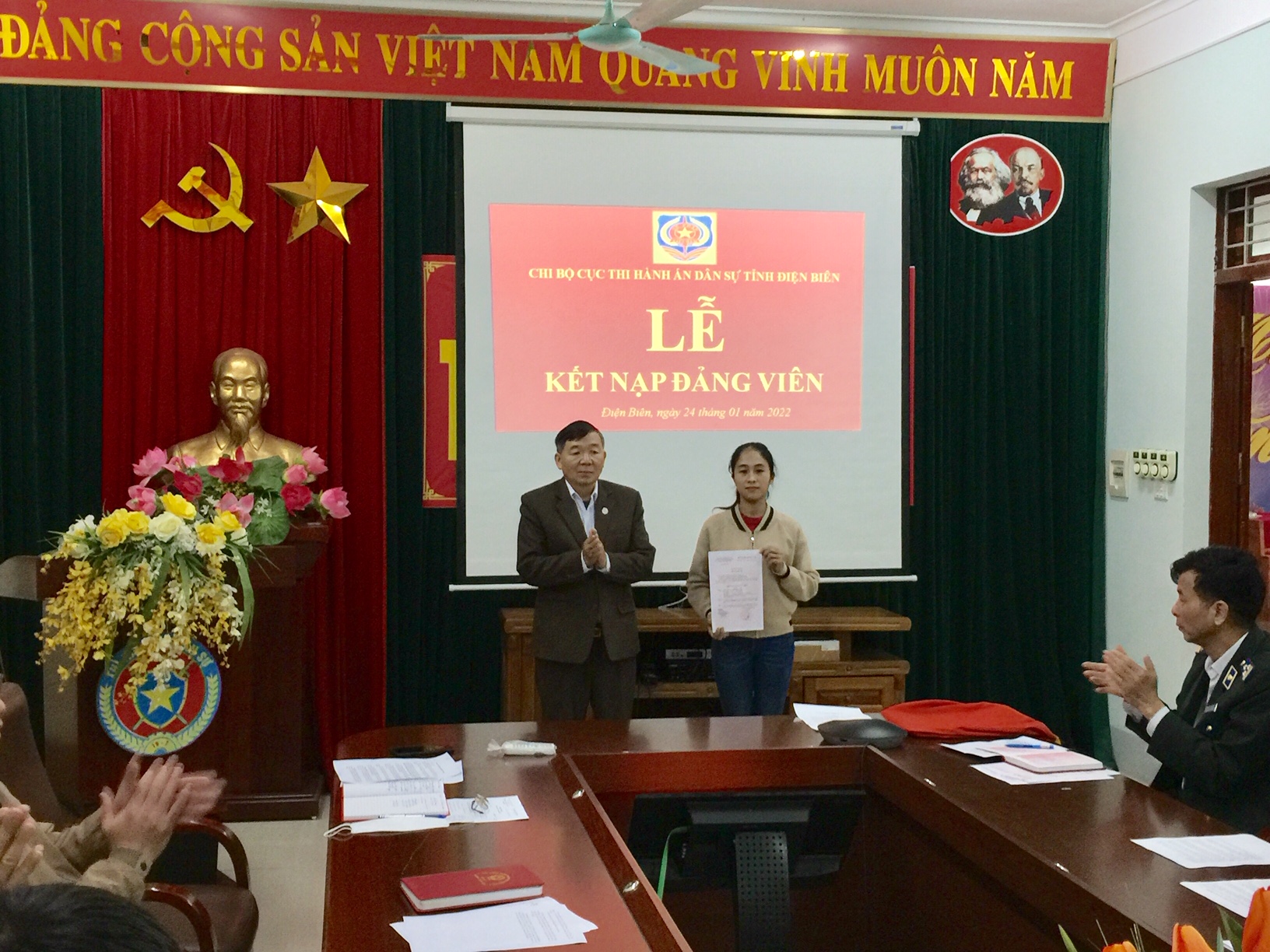 Ngày 24/01/2022 Chi bộ Cục Thi hành án dân sự tỉnh Điện Biên tổ chức kết nạp đảng viên mới