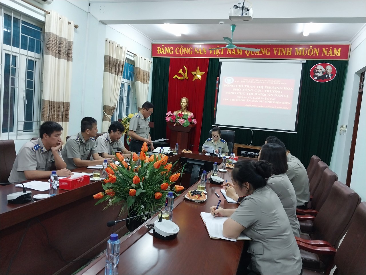 Sáng ngày 22/5/2024, đồng chí Trần Thị Phương Hoa, Phó Tổng cục trưởng Tổng cục Thi hành án dân sự cùng đoàn công tác của Tổng cục THADS đã có buổi làm việc với Cục Thi hành án dân sự tỉnh Điện Biên. Tham dự và làm việc với đoàn có đồng chí Đoàn Trọng Ngôn, Phó cục trưởng Cục Thi hành án dân sự tỉnh Điện Biên và lãnh đạo các phòng chuyên môn thuộc Cục THADS tỉnh.