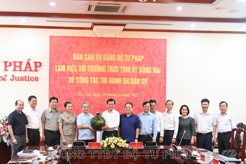 Kết luận buổi làm việc, Bộ trưởng Bộ Tư pháp Lê Thành Long đề nghị Ban Thường vụ Tỉnh ủy Đồng Nai tiếp tục quan tâm lãnh đạo, chỉ đạo đối với công tác THADS, THAHC trên địa bàn; tổ chức triển khai có hiệu quả các Chỉ thị, Nghị quyết liên quan đến công tác THADS, THAHC. Bộ trưởng cũng đề nghị Lãnh đạo tỉnh Đồng Nai tiếp tục phối hợp chặt chẽ với Ban Cán sự Đảng Bộ Tư pháp, Tổng cục THADS trong công tác tổ chức cán bộ, cơ sở vật chất, bố trí kinh phí… đặc biệt, tiếp tục chia sẻ những khó khăn đối với Bộ, ngành Tư pháp trong công tác THADS; sát sao trong công tác chỉ đạo, lãnh đạo, giám sát đối với công tác THADS nhằm ngăn ngừa tiêu cực, tham nhũng, xử lý sai phạm trong công tác THADS trên địa bàn.