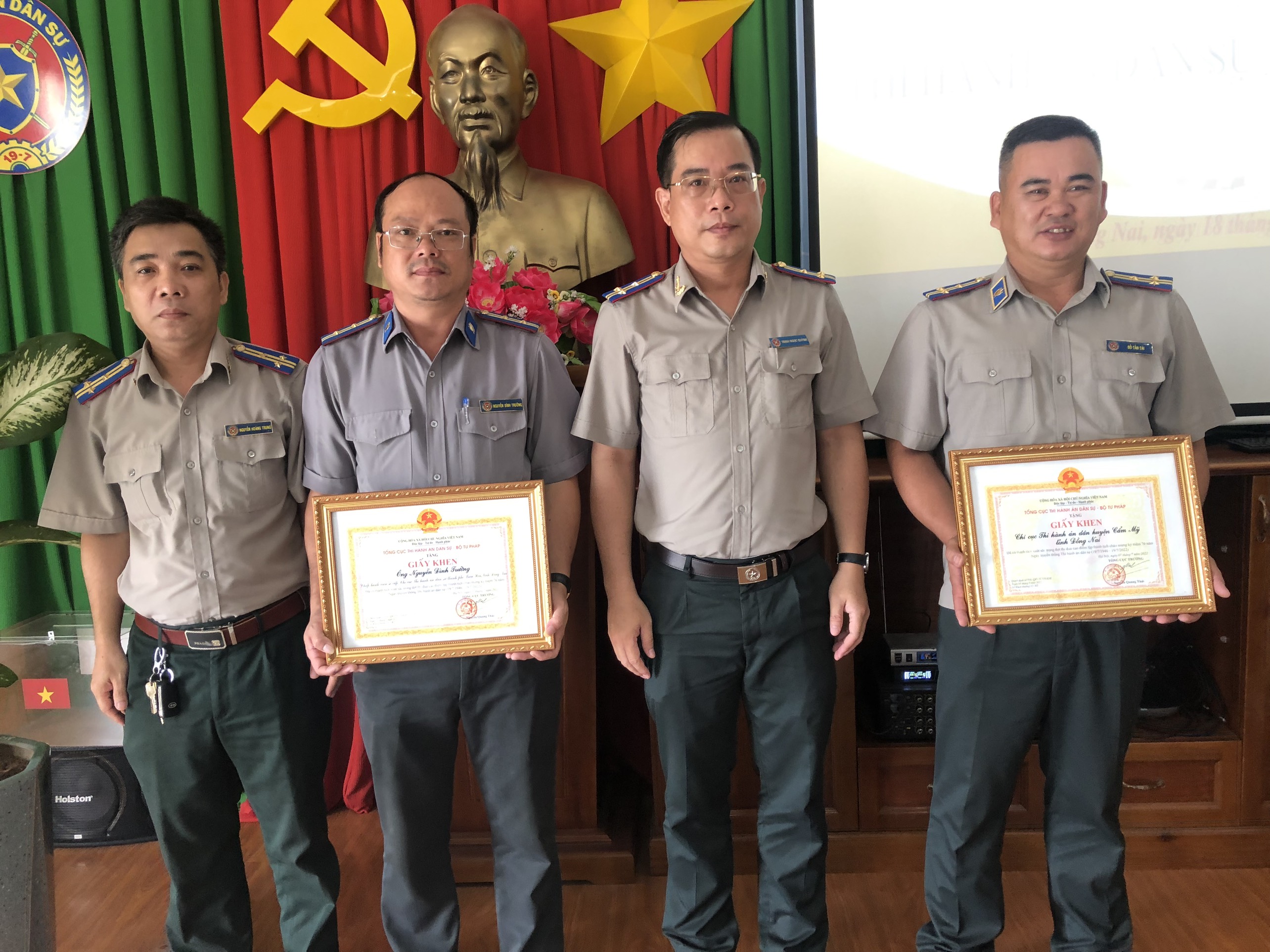 Tại buổi lễ Lãnh đạo Cục trao giấy khen của Tổng cục trưởng cho 02 tập thể và 13 cá nhân có thành tích xuất sắc trọng đợt thi đua cao điểm kỷ niệm 76 năm ngày truyền thống Thi hành án dân sự và đặc biệt Cục trưởng đã tặng giấy khen cho 01 đồng chí Chấp hành viên của Chi cục Thi hành án dân sự huyện Thống Nhất có thành tích đột xuất trong giải quyết án.