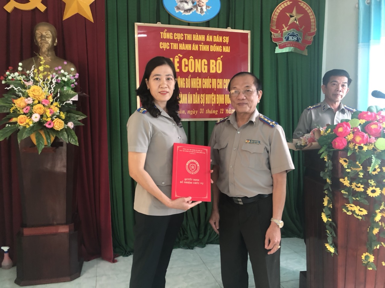Thực hiện kế hoạch điều động, luân chuyển cán bộ lãnh đạo của Tổng cục THADS -Bộ Tư pháp. Ngày 31/12/2020 tại Chi cục Thi hành án dân sự huyện Định Quán , Cục Thi hành án dân sự tỉnh Đồng Nai đã làm lễ công bố quyết định điều động và bổ nhiệm chức vụ Chi cục trưởng Chi cục Thi hành án dân sự huyện Định Quán đối với Bà Trịnh Thị Trang, nguyên Chi cục trưởng Chi cục thi hành án huyện Tân phú, đến dự có đồng chí Phan Văn Châu, Cục trưởng Cục Thi hành án dân sự tỉnh Đồng Nai, đại diện UBND huyện Định Quán có đồng chí Trần Văn Tú, Phó Bí Thư, Chủ tịch UBND huyện Định Quán, Tại buổi lể lãnh đạo Cục Thi hành án dân sự tỉnh và chủ tịch UBND huyện Định Quán đã giao nhiệm vụ cho đồng chí Trang và dặn dò động viên đồng chí cùng với tập thể cán bộ công chức đoàn kết , nhất trí cao để hoàn thành xuất sắc nhiệm vụ. Cùng ngày tại Chi cục Thi hành án dân sự huyện Tân phú. Cục Thi hành án dân sự tỉnh Đồng Nai cũng công bố quyết định điều động và bổ nhiệm chức vụ Chi cục trưởng Chi cục Thi hành án huyện Tân phú cho Đồng chí Nguyễn Thành Dũng, nguyên Chi cục trưởng Chi cục Thi hành án dân sự huyện Định Quán. Đến dự và phát biểu chỉ đạo tại hội nghị có đồng chí Nguyễn Trung Thành - Bí thư Huyện ủy và đồng chí Nguyễn Hữu Trí- Chủ tịch UBNDS huyện Tân Phú. Tại Buổi lể đồng chí Nguyễn Thành Dũng , Chi cục trưởng Chi cục Thi hành án huyện Tân Phú hứa quyết tâm cùng tập thể Cán bộ, công chức, người lao động của Chi cục hoàn thành xuất sắc các nhiệm vụ được giao.