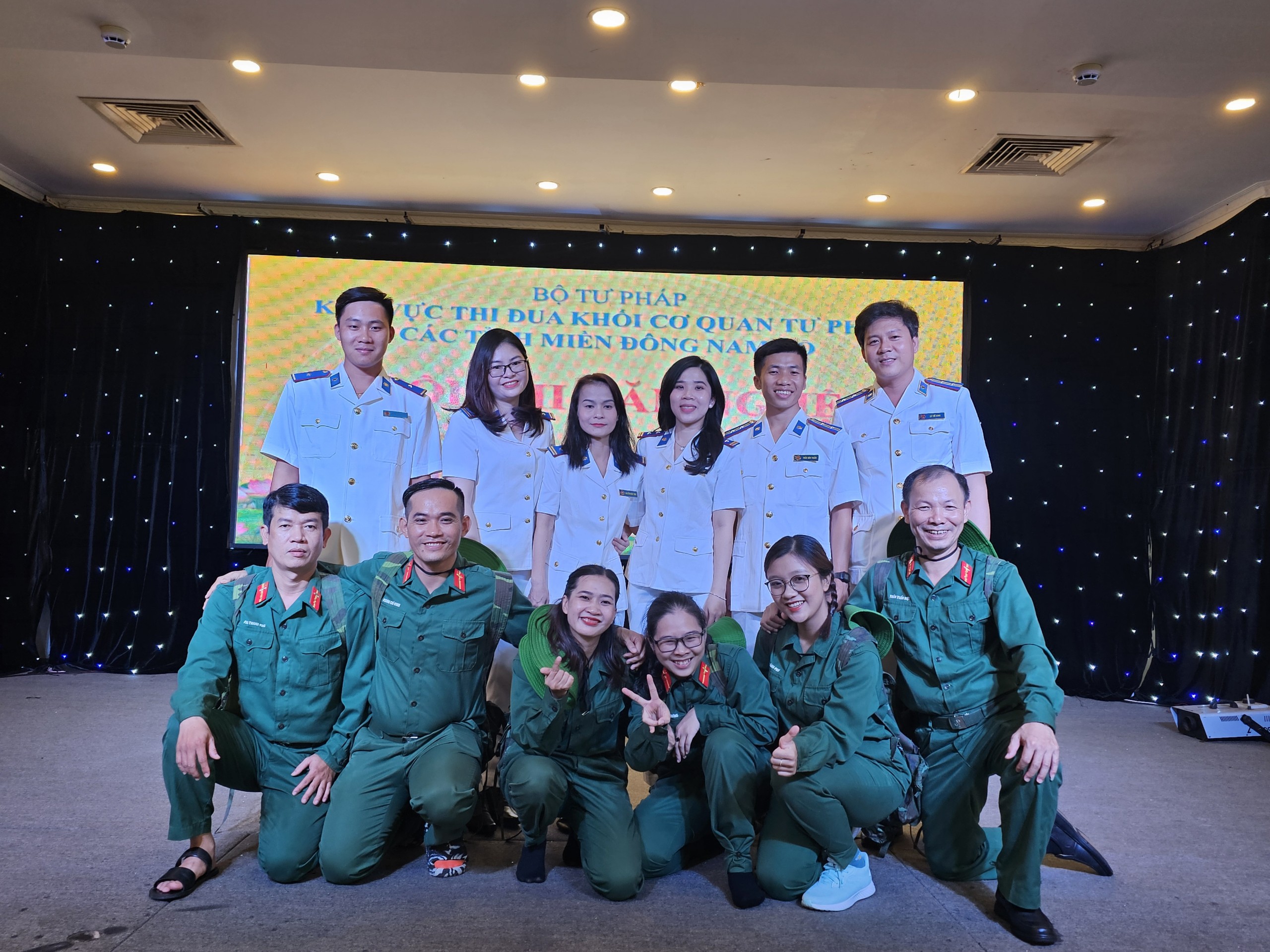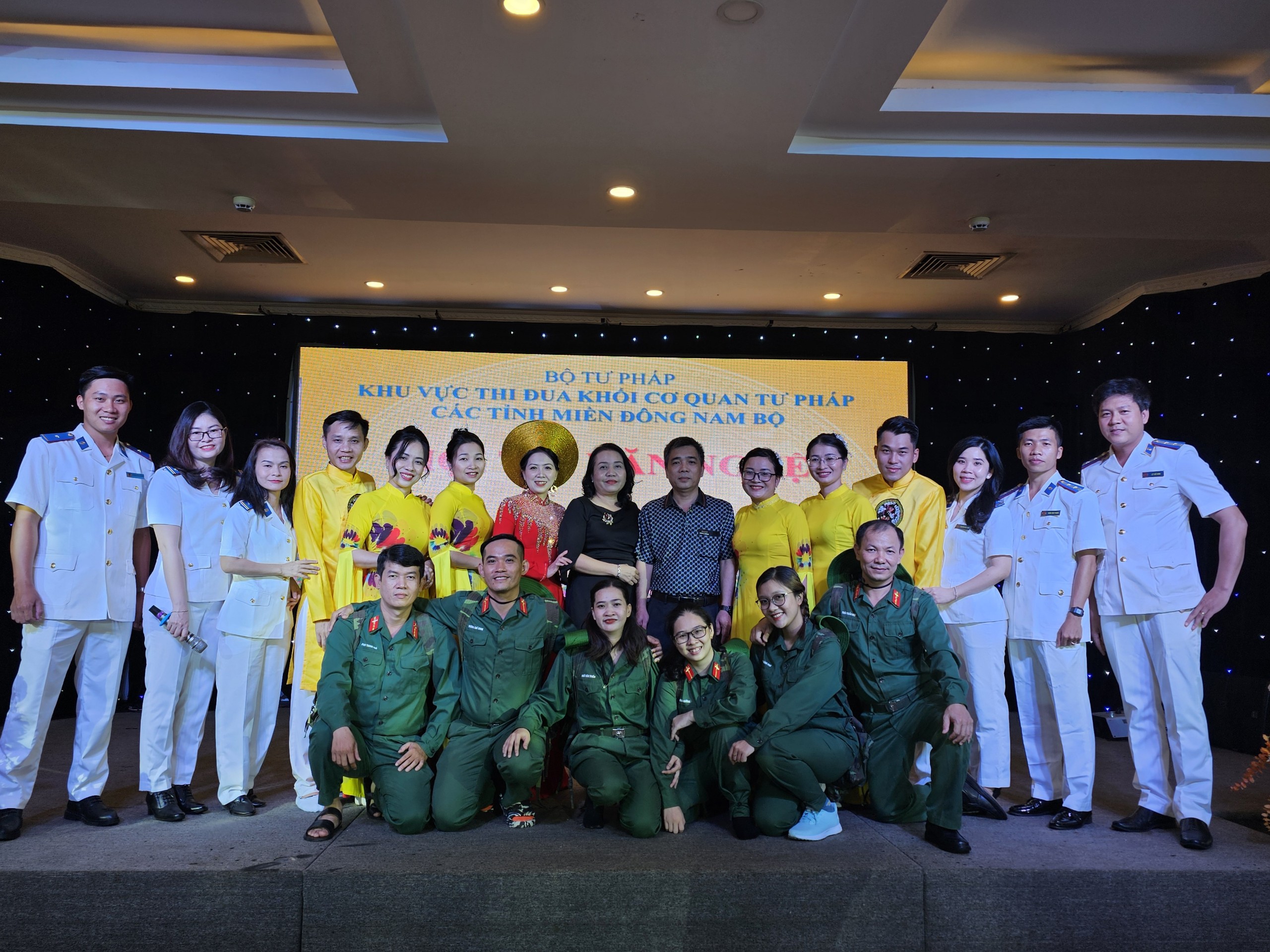Tiết mục văn nghệ của đoàn Đồng Nai: Tốp ca, múa Bác đang cùng chúng cháu hành quân(Cục THADS tỉnh Đồng Nai), đơn ca, múa Hương sắc Đồng Nai(Sở Tư pháp tỉnh Đồng Nai)