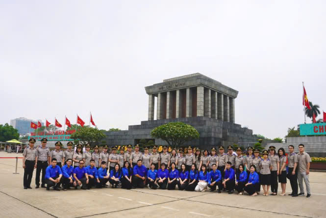Tại Lăng Chủ tịch Hồ Chí Minh - Quảng trường Ba Đình lịch sử, trong không khí thiêng liêng và trang nghiêm, đoàn đã thành kính đặt vòng hoa vào Lăng viếng Bác và dành phút tưởng niệm trước anh linh của Người. Đây không chỉ là nghi thức tưởng niệm mang ý nghĩa sâu sắc, mà còn là dịp để mỗi thành viên trong đoàn lắng lòng, tự soi rọi lại bản thân trong việc học tập và làm theo tư tưởng, đạo đức, phong cách Hồ Chí Minh – tấm gương sáng ngời về trí tuệ, đạo đức cách mạng và lòng yêu nước.