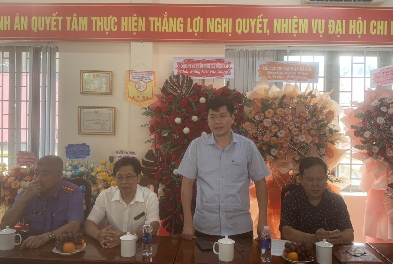 Phát biểu tại buổi Lễ trao Quyết định, ông Trịnh Ngọc Quỳnh – Cục trưởng Cục THADS tỉnh Đồng Nai công tác cán bộ là nhiệm vụ thường xuyên của cơ quan, đơn vị nhằm sắp xếp, kiện toàn đội ngũ cán bộ lãnh đạo, quản lý đáp ứng yêu cầu nhiệm vụ trong tình hình mới. Đồng thời phát biểu ghi nhận, đánh giá cao sự nỗ lực và những kết quả đạt được bà Hồ Thị Vân Giang trong thời gian là Phó Chi cục trưởng phụ trách Chi cục THADS huyện Thống Nhất. Bên cạnh đó, đề nghị bà Hồ Thị Vân Giang trên cương vị mới tiếp tục phát huy hơn nữa những thành tích đạt được, đánh giá đúng tình hình, bối cảnh địa phương và những yêu cầu đặt ra của Đảng, Nhà nước, ngành để cùng tập thể lãnh đạo Chi cục THADS huyện Thống Nhất đoàn kết, thống nhất chỉ đạo đề ra các giải pháp phù hợp, bảo đảm công tác THADS trên địa bàn huyện ngày càng tốt hơn, nỗ lực hoàn thành tốt nhiệm vụ được giao. Cũng nhân dịp này, Cục trưởng Trịnh Ngọc Quỳnh gửi lời cảm ơn sự quan tâm của Huyện ủy, Ủy ban nhân dân; Tòa án nhân dân, Viện Kiểm sát nhân dân và Công an huyện Thống Nhất đã quan tâm chỉ đạo, phối hợp chặt chẽ với Chi cục THADS huyện trong suốt thời gian qua.