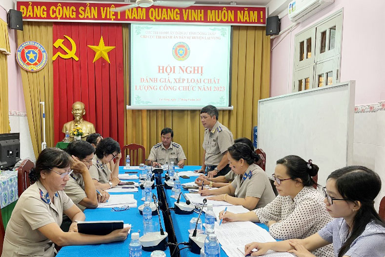 Vào lúc 13 giờ 30 phút, ngày 27/9/2023 Chi cục Thi hành án dân sự huyện Lai Vung tổ chức cuộc họp đánh giá công chức và bình xét thi đua khen thưởng năm 2023