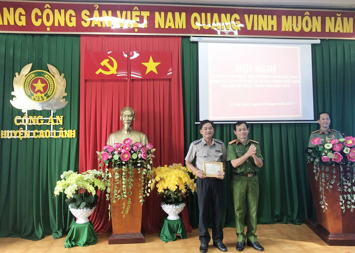 Công an huyện Cao Lãnh tổ chức tặng Kỷ niệm chương “Bảo vệ An ninh tổ quốc” của Bộ Công an cho đồng chí Chi cục Trưởng Chi cục Thi hành án dân sự huyện Cao Lãnh