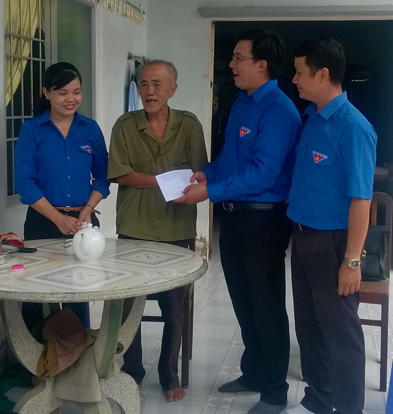 Tiếp đó, ngày 22/7/2017, Chi đoàn cùng các cơ sở đoàn thuộc Cụm đoàn số 02 thuộc Đoàn Khối các cơ quan Tỉnh đến thăm và tặng quà cho 05 hộ gia đình chính sách, thương binh tại xã Tân Nhuận Đông, huyện Châu Thành, tỉnh Đồng Tháp.