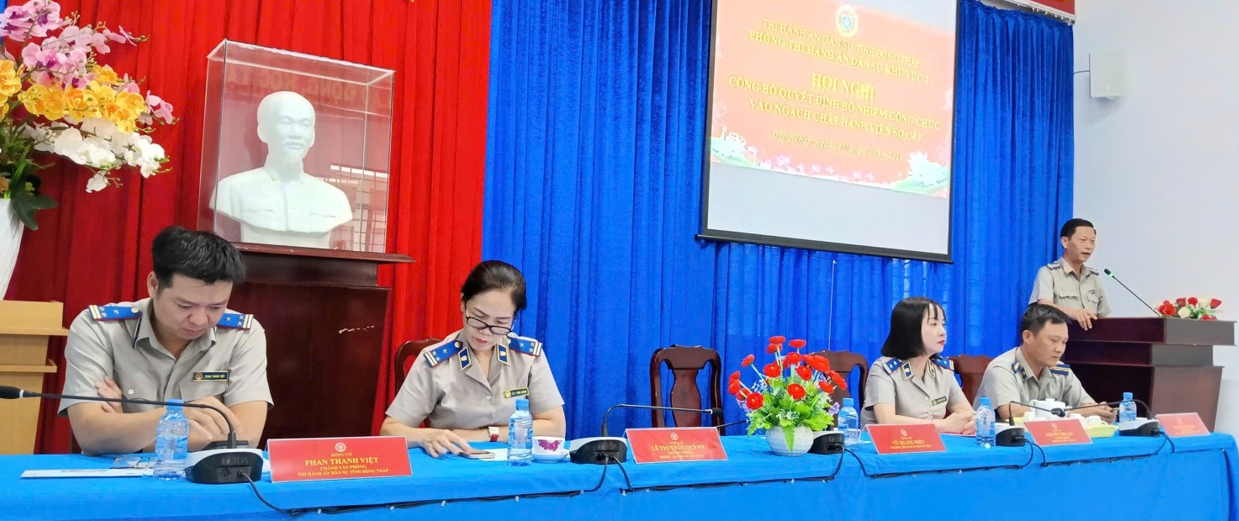 Chiều ngày 04/02/2026, tại Hội trường Phòng Thi hành án dân sự (THADS) Khu vực 2, THADS tỉnh Đồng Tháp đã long trọng tổ chức Lễ công bố và trao quyết định bổ nhiệm chức danh Chấp hành viên sơ cấp.