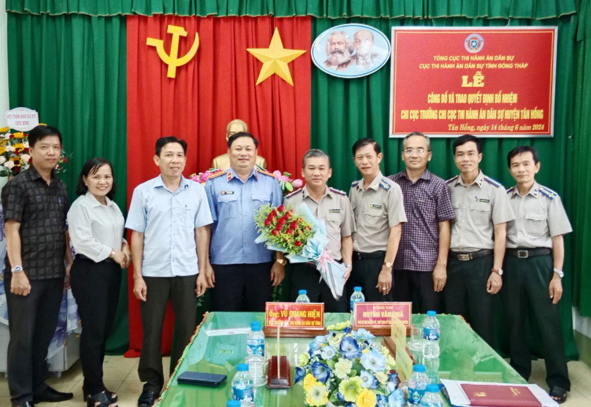 Tại buổi lễ ông Vũ Quang Hiện, Cục Trưởng Cục thi hành án dân sự tỉnh trao quyết định bổ nhiệm và Ông Huỳnh Văn Nhã, Chủ tịch UBND Huyện tặng hoa chúc mừng ông Nguyễn Ngọc Được, Phó Chi cục trưởng phụ trách Chi cục thi hành án dân sự huyện Tân Hồng giữ chức vụ Chi cục trưởng Chi cục thi hành án dân sự huyện Tân Hồng kể từ ngày 14/6/2024, thời gian giữ chức vụ 5 năm kể từ ngày bổ nhiệm.