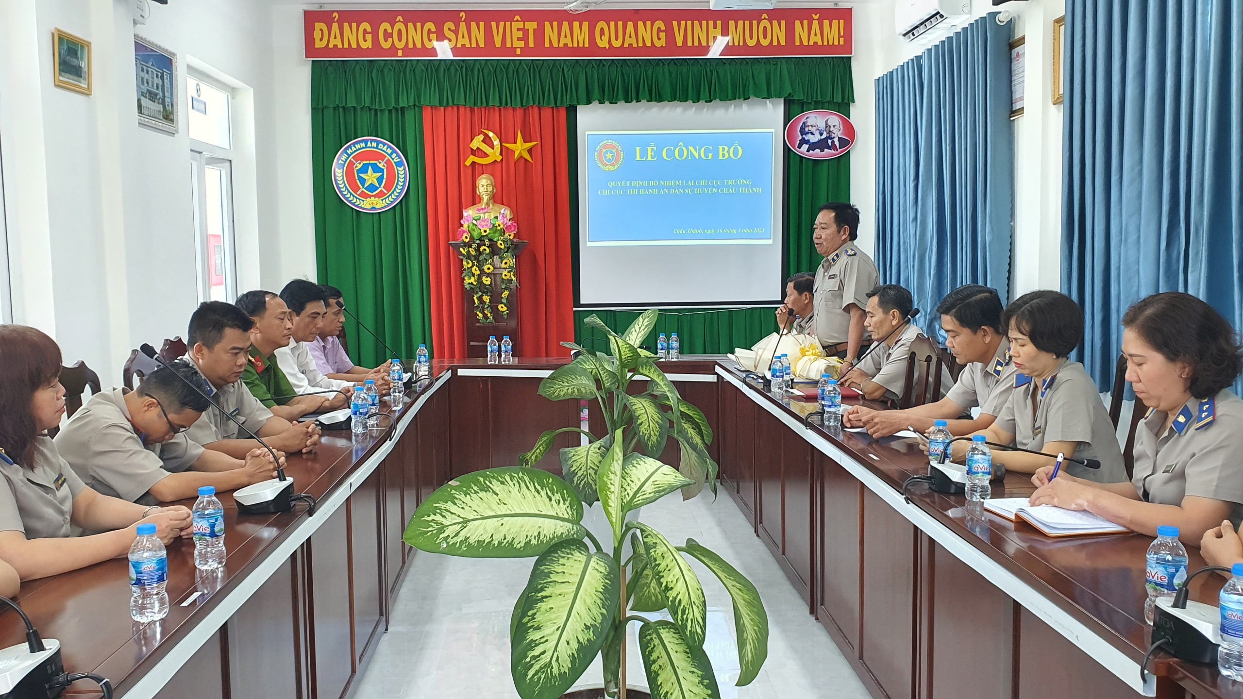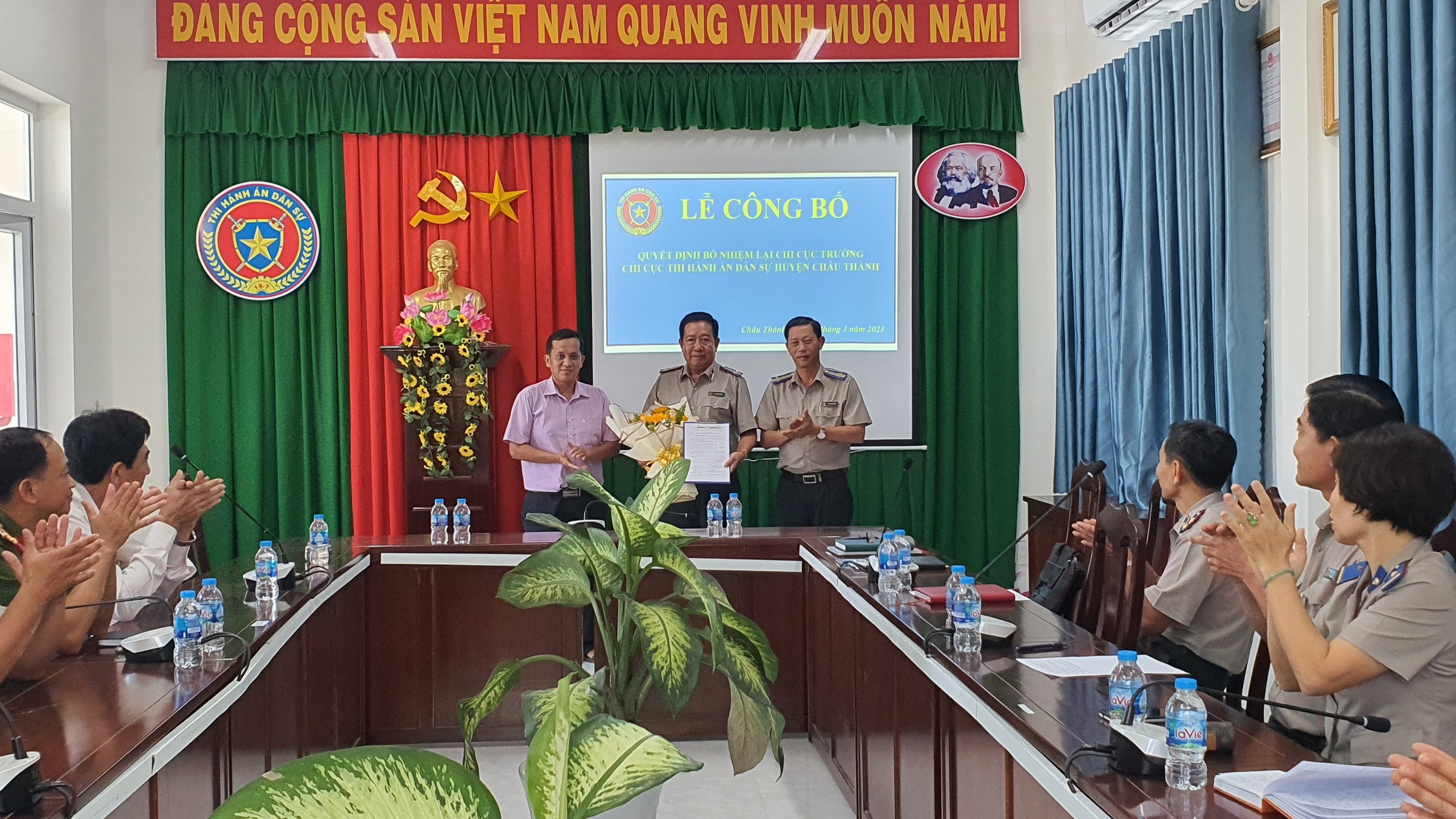 Chiều 16/03/2023, tại trụ sở Chi cục Thi hành án dân sự huyện Châu Thành, Cục Thi hành án dân sự Tỉnh tổ chức Lễ công bố và trao quyết định bổ nhiệm lại Chi cục trưởng cho ông Lê Thanh Giang, Chấp hành viên trung cấp, kể từ ngày 12/3/2023.