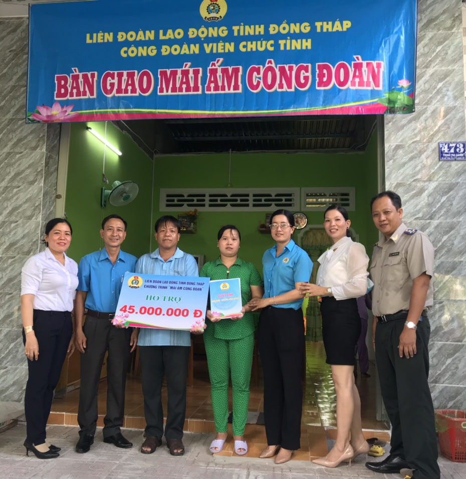 Chiều ngày 22/8/2022, lãnh đạo Công đoàn viên chức Tỉnh cùng đại diện Công đoàn cơ sở Cục Thi hành án dân sự và đại diện chính quyền địa phương xã Mỹ Trà, thành phố Cao Lãnh tiến hành bàn giao 01 căn nhà "Mái ấm Công đoàn" cho đoàn viên khó khăn về nhà ở tại ấp 2, xã Mỹ Trà, thành phố Cao Lãnh.