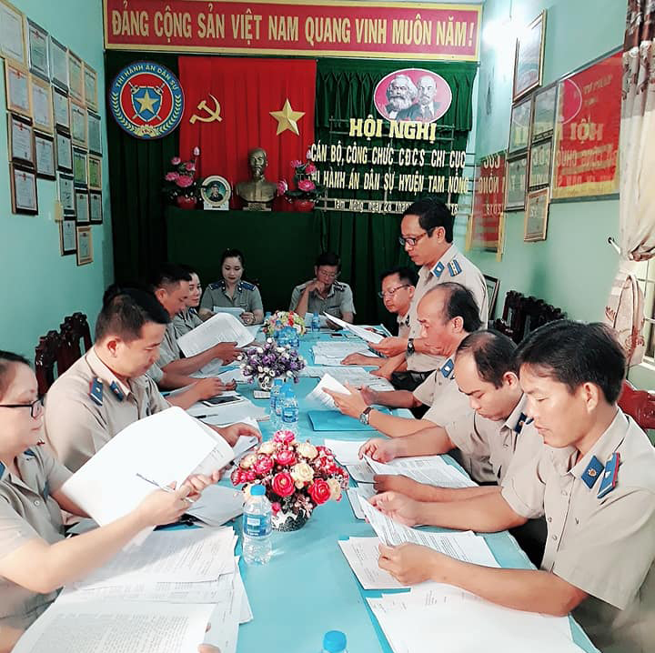 Vào lúc 13 giờ 30 phút ngày 28/12/2018, Chi cục Thi hành án dân sự huyện Tam Nông phối hợp với Công đoàn của đơn vị tổ chức Hội nghị cán bộ, công chức năm 2019. Tham dự Hội nghị có đồng chí Vũ Quang Hiện, Bí thư Chi bộ, Chi cục trưởng Chi cục Thi hành án dân sự huyện, đồng chí Lê Trọng Trưởng, Chi ủy viên Chi bộ, Phó Chi cục trưởng và đồng chí Trần Ngọc Phương Thanh, Phó Chủ tịch Công đoàn cơ sở Chi cục Thi hành án dân sự huyện và toàn thể công chức, công đoàn viên trong đơn vị.