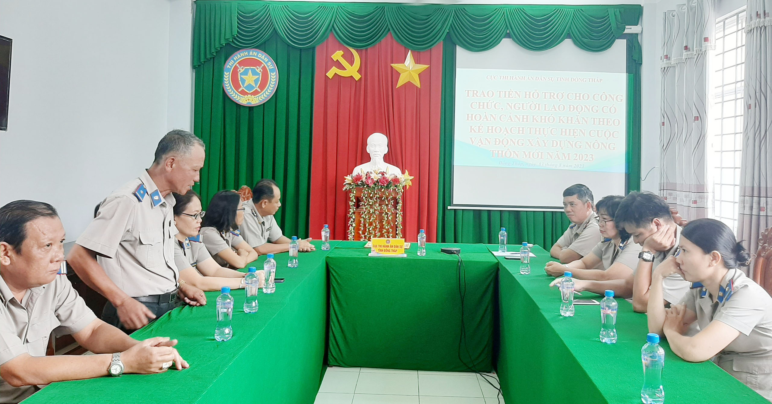 Tiếp tục đẩy mạnh phong trào thi đua “Ngành Tư pháp chung sức góp phần xây dựng nông thôn mới”, Cục Thi hành án dân sự (THADS) tỉnh Đồng Tháp đã xây dựng kế hoạch để tổ chức thực hiện cuộc vận động xây dựng nông thôn mới năm 2023. Theo đó, lãnh đạo Cục đã phối hợp với tổ chức Công đoàn cơ quan thống nhất số tiền vận động và đối tượng vận động là toàn thể công chức, người lao động các cơ quan THADS trong Tỉnh (ngoài ra tùy tình hình thực tế các đơn vị có thể phát động công chức, người lao động vận động người thân, các tổ chức, cá nhân khác tham gia đóng góp trên tinh thần tự nguyện để góp phần cùng cả nước xây dựng nông thôn mới).